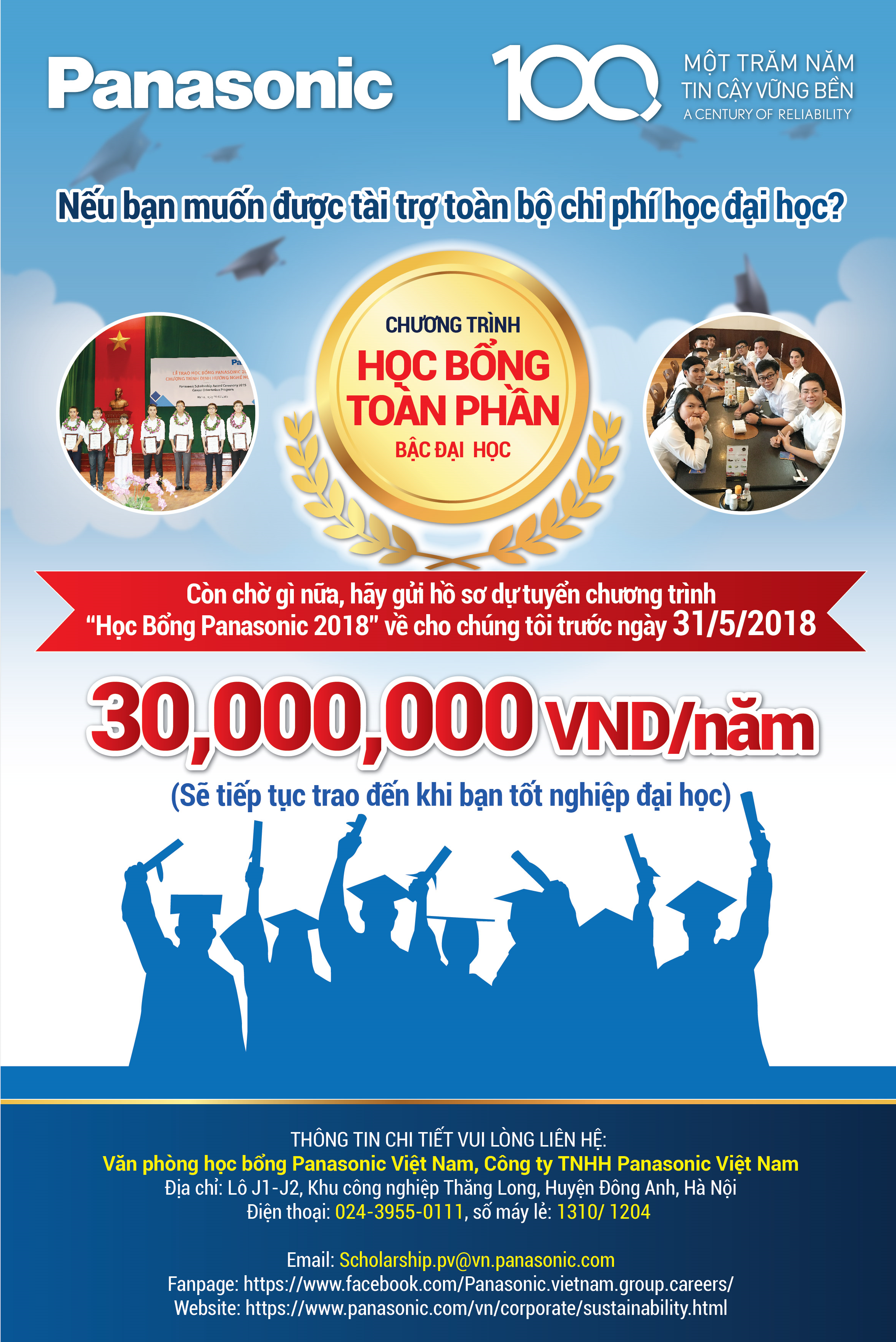 Chương trình học bổng toàn phần bậc đại học Panasonic năm 2018