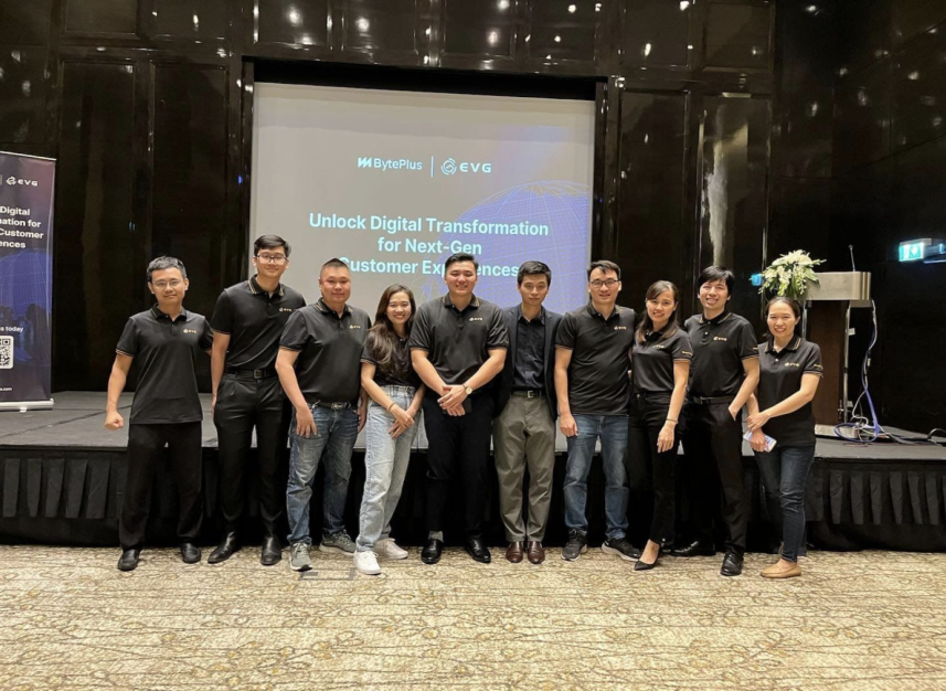 Anh Dương Ngọc Thắng (thứ 4, từ trái sang) chụp ảnh cùng các cộng sự tại Công ty Everest Global JSC.
