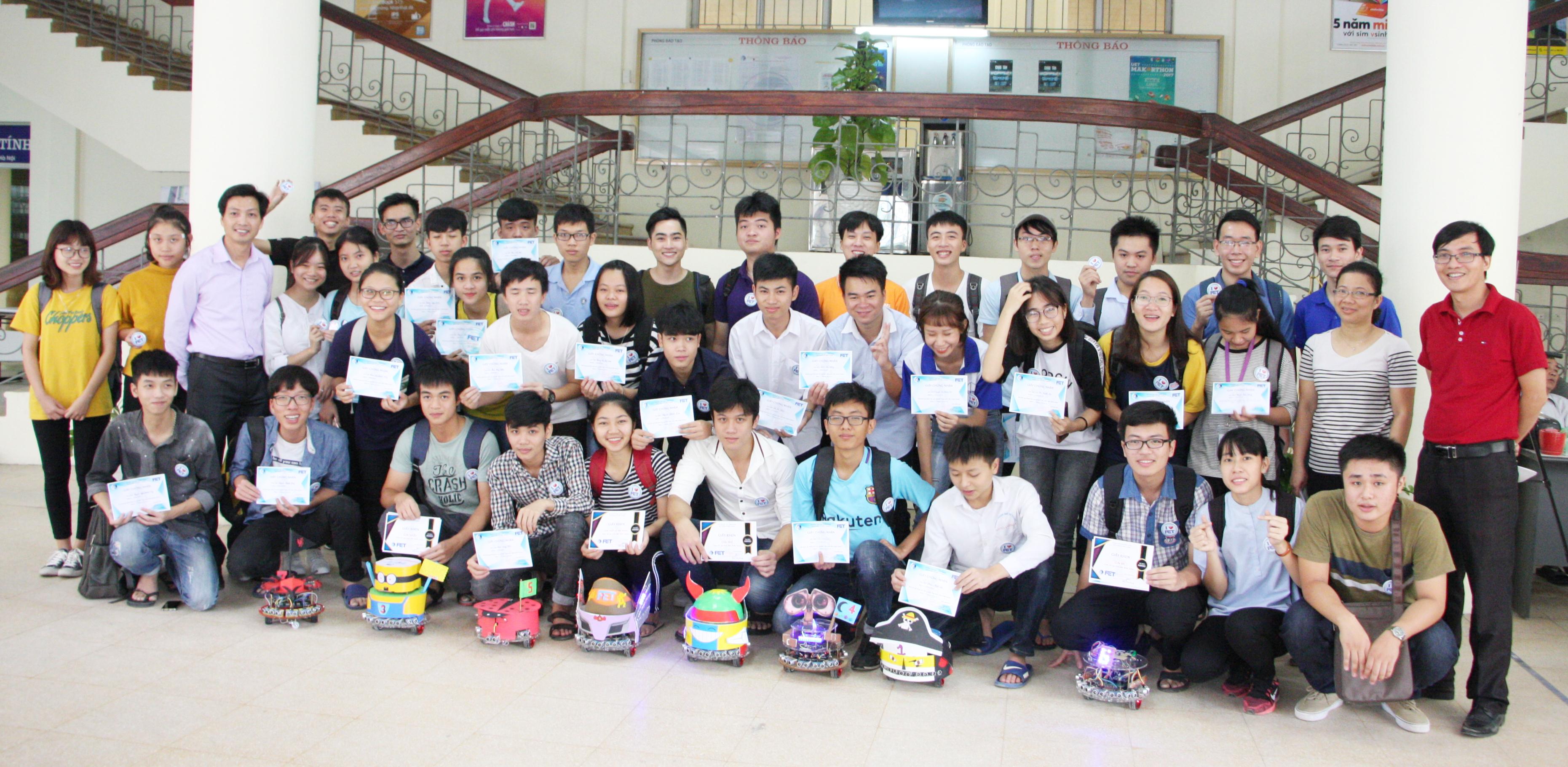 Niềm vui của các sinh viên năm thứ nhất khi tham gia Khóa học trải nghiệm Lập trình Robot và được cấp chứng nhận Khóa học