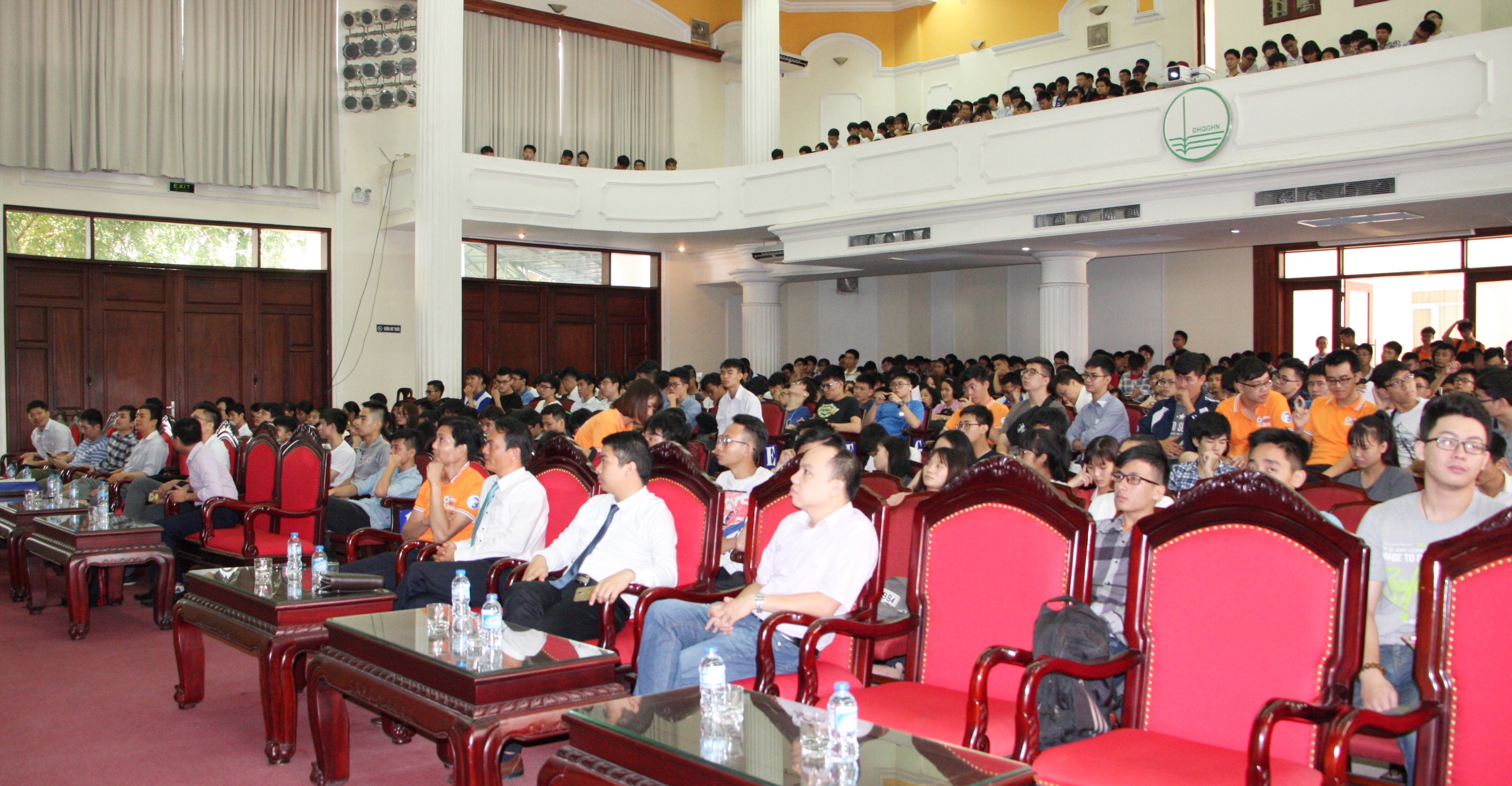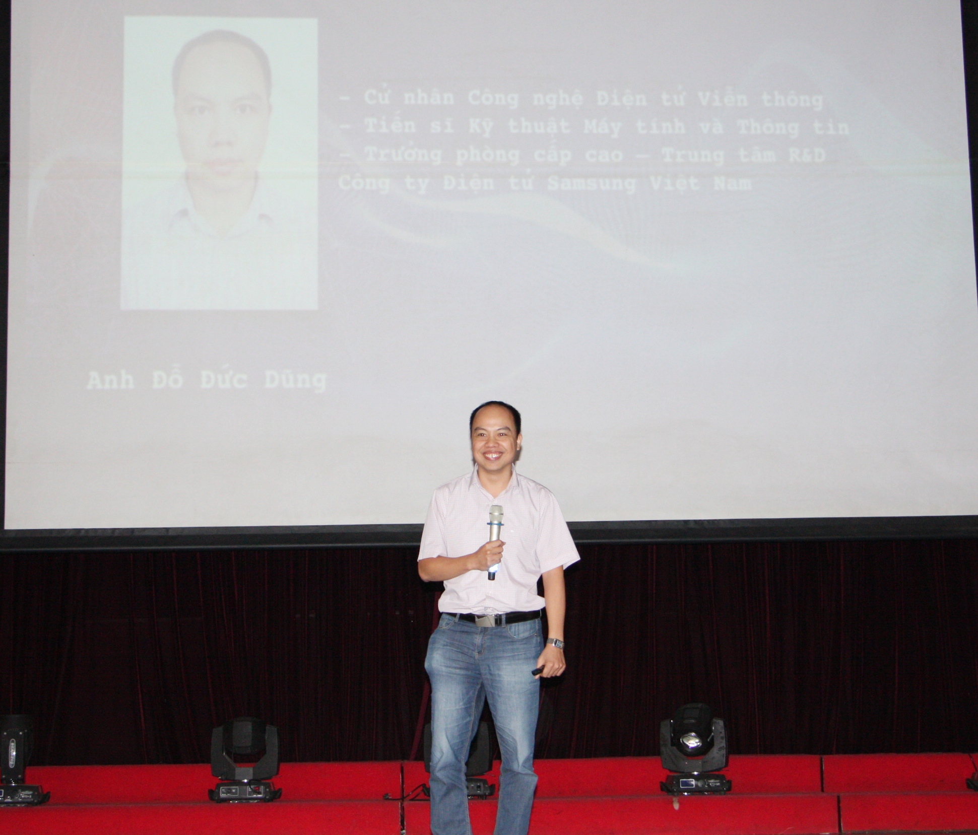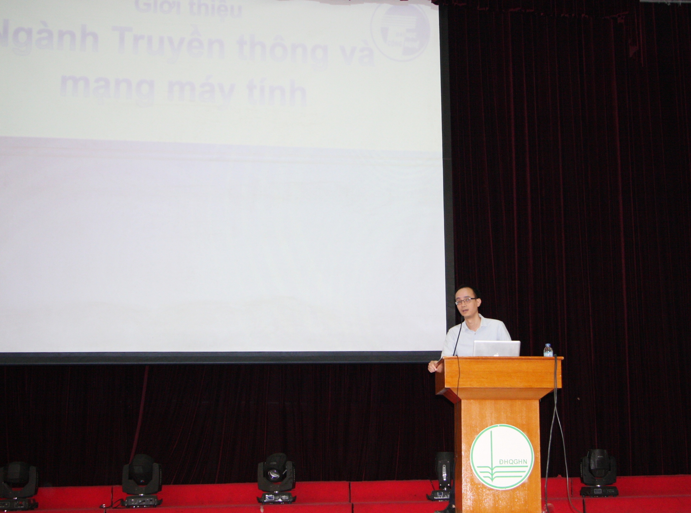Tại buổi hội thảo, TS. Trần Quốc Long (Chủ nhiệm Bộ môn Khoa học máy tính), TS. Nguyễn Hoài Sơn (Chủ nhiệm Bộ môn Mạng& Truyền thông máy tính) và PGS.TS. Nguyễn Trí Thành (Phó chủ nhiệm Bộ môn Hệ thống thông tin) đã lần lượt trình bày, chia sẻ với sinh viên về những đặc điểm của ngành học, những cơ hội và thách thức trong quá trình học tập cũng như công việc sau khi ra trường.