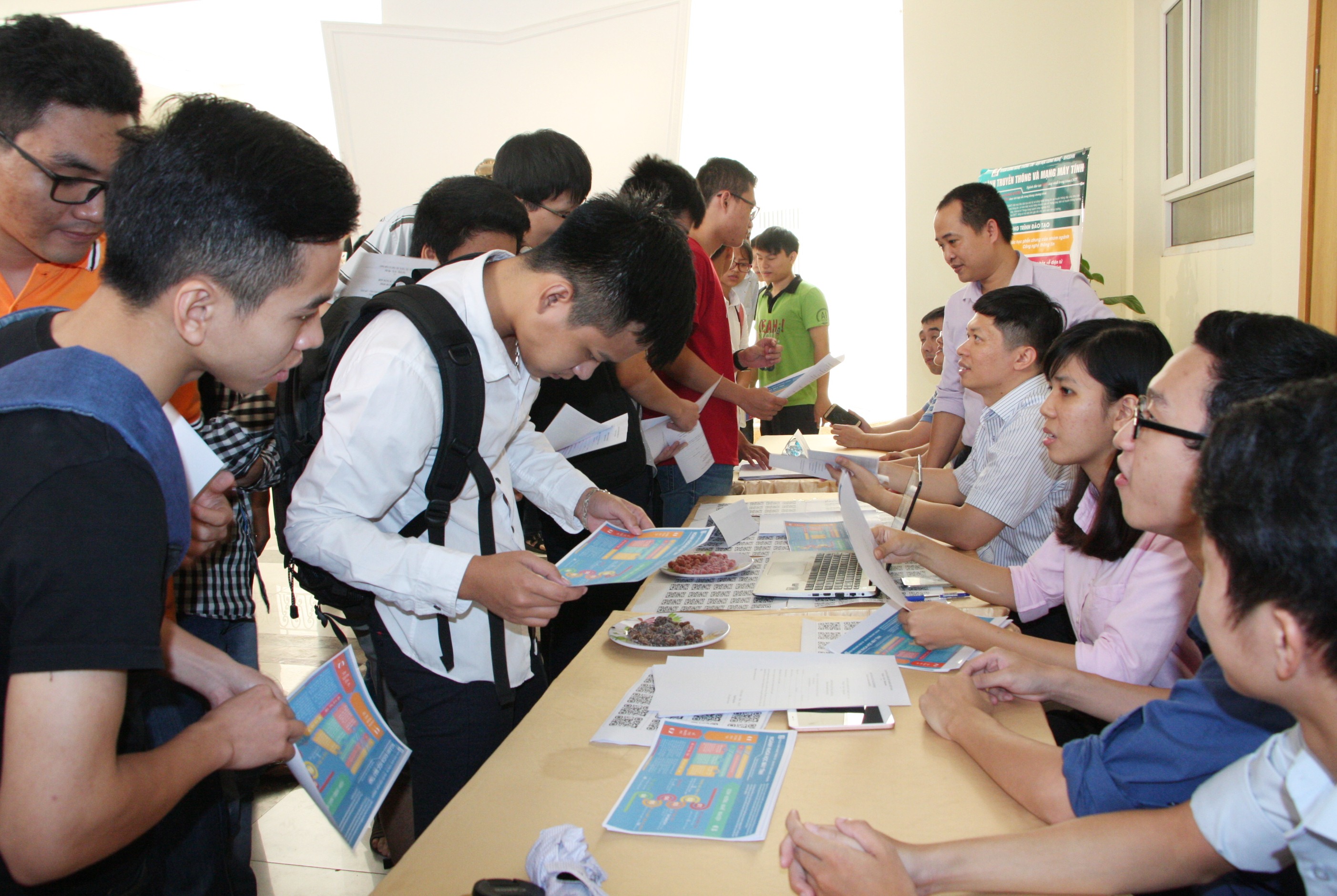 Bàn hướng dẫn, tư vấn của Khoa CNTT được đông đảo sinh viên quan tâm