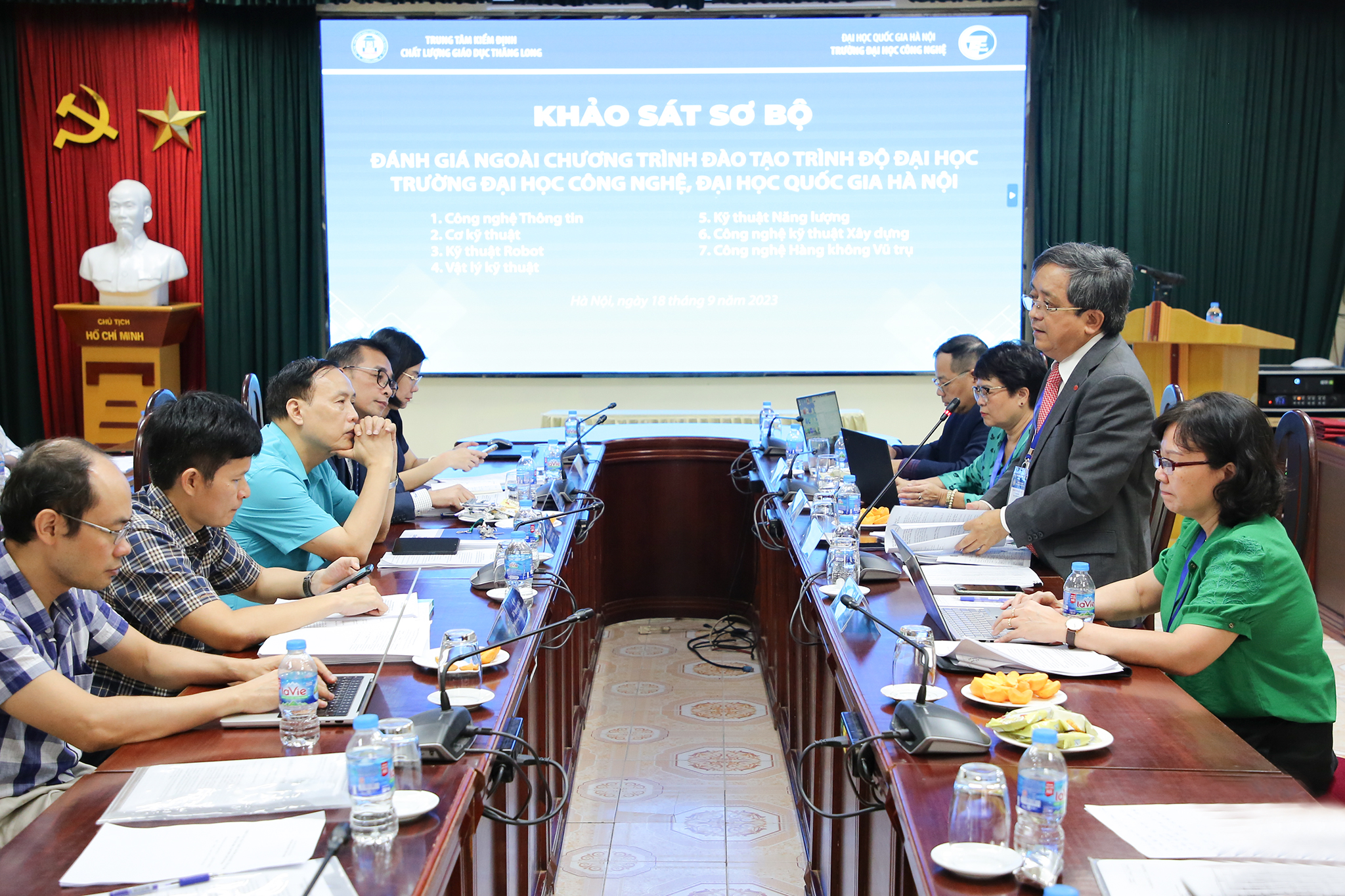 Ngày 18/9/2023, đoàn chuyên gia đánh giá ngoài (ĐGN) được thành lập bởi Trung tâm Kiểm định chất lượng giáo dục (KĐCLGD) Thăng Long đã tiến hành khảo sát sơ bộ tại Trường Đại học Công nghệ – Đại học Quốc gia Hà Nội để chuẩn bị cho đợt khảo sát chính thức 07 chương trình đào tạo (CTĐT), gồm ngành Công nghệ thông tin, ngành Kỹ thuật Robot, ngành Vật lý kỹ thuật, ngành Cơ kỹ thuật, ngành Công nghệ Kỹ thuật Xây dựng, ngành Kỹ thuật năng lượng, ngành Công nghệ Hàng không vũ trụ theo quy trình kiểm định chất lượng giáo dục của Bộ Giáo dục và Đào tạo.