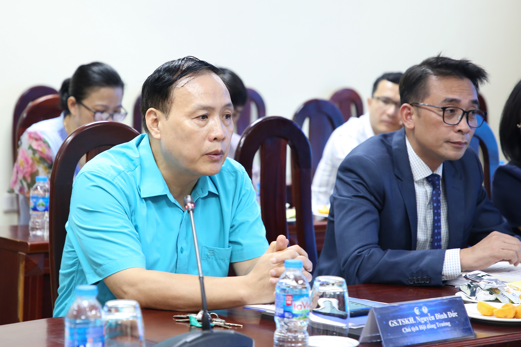 GS.TSKH. Nguyễn Đình Đức – Chủ tịch Hội đồng trường, Chủ nhiệm Khoa Công nghệ Xây dựng – Giao thông trao đổi tại buổi làm việc
