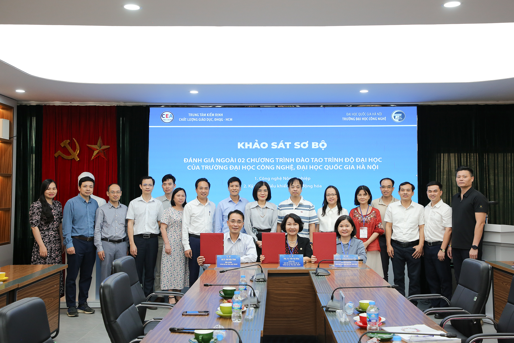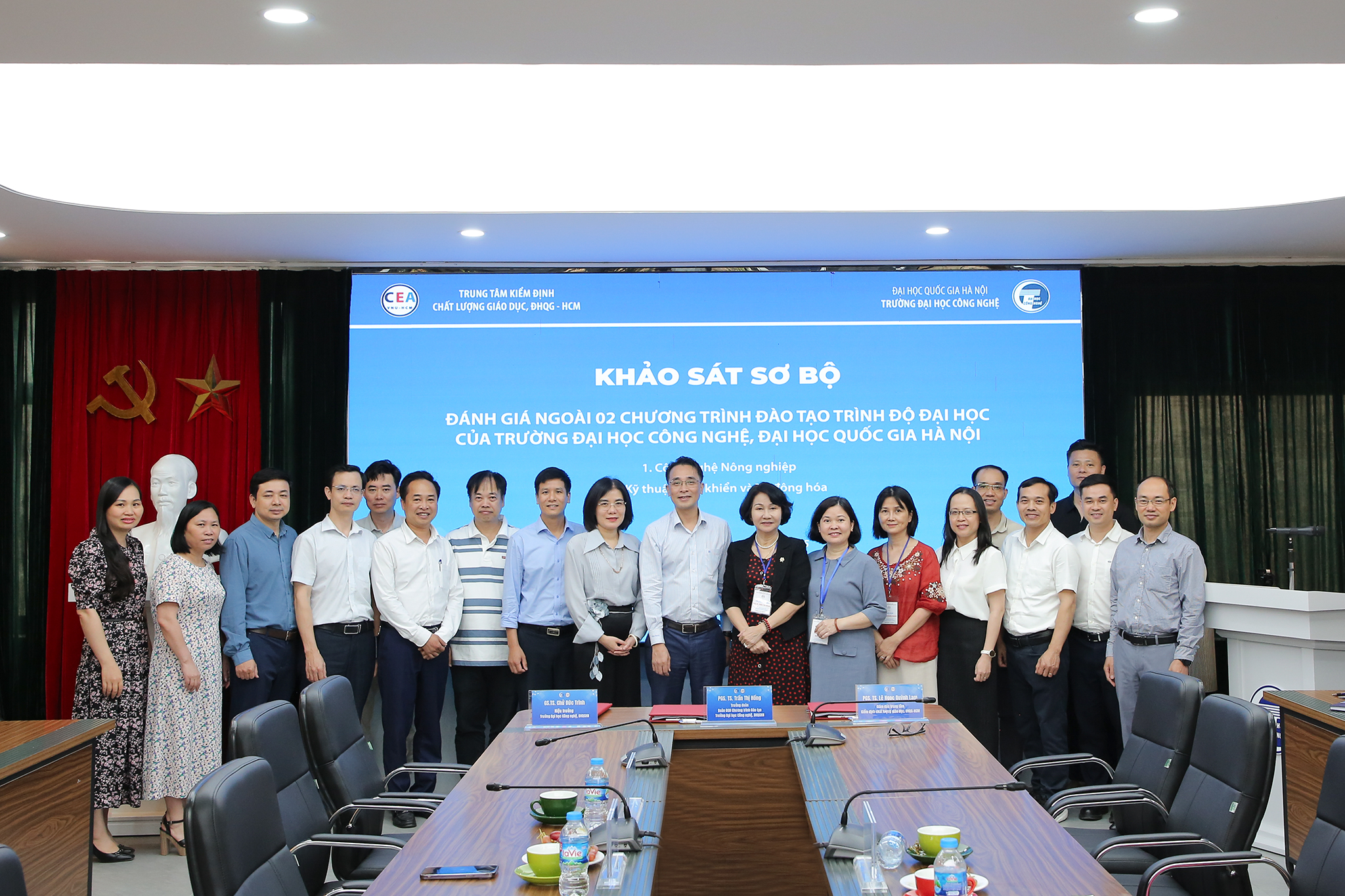 Ngày 03/06/2025, đoàn chuyên gia đánh giá ngoài (ĐGN) được thành lập bởi Trung tâm Kiểm định chất lượng giáo dục (KĐCLGD) Đại học Quốc gia TP. Hồ Chí Minh đã tiến hành khảo sát sơ bộ tại Trường Đại học Công nghệ – Đại học Quốc gia Hà Nội để chuẩn bị cho đợt khảo sát chính thức của 02 chương trình đào tạo, gồm ngành Kỹ thuật điều khiển và Tự động hóa, ngành Công nghệ nông nghiệp theo quy trình kiểm định chất lượng giáo dục của Bộ Giáo dục và Đào tạo.