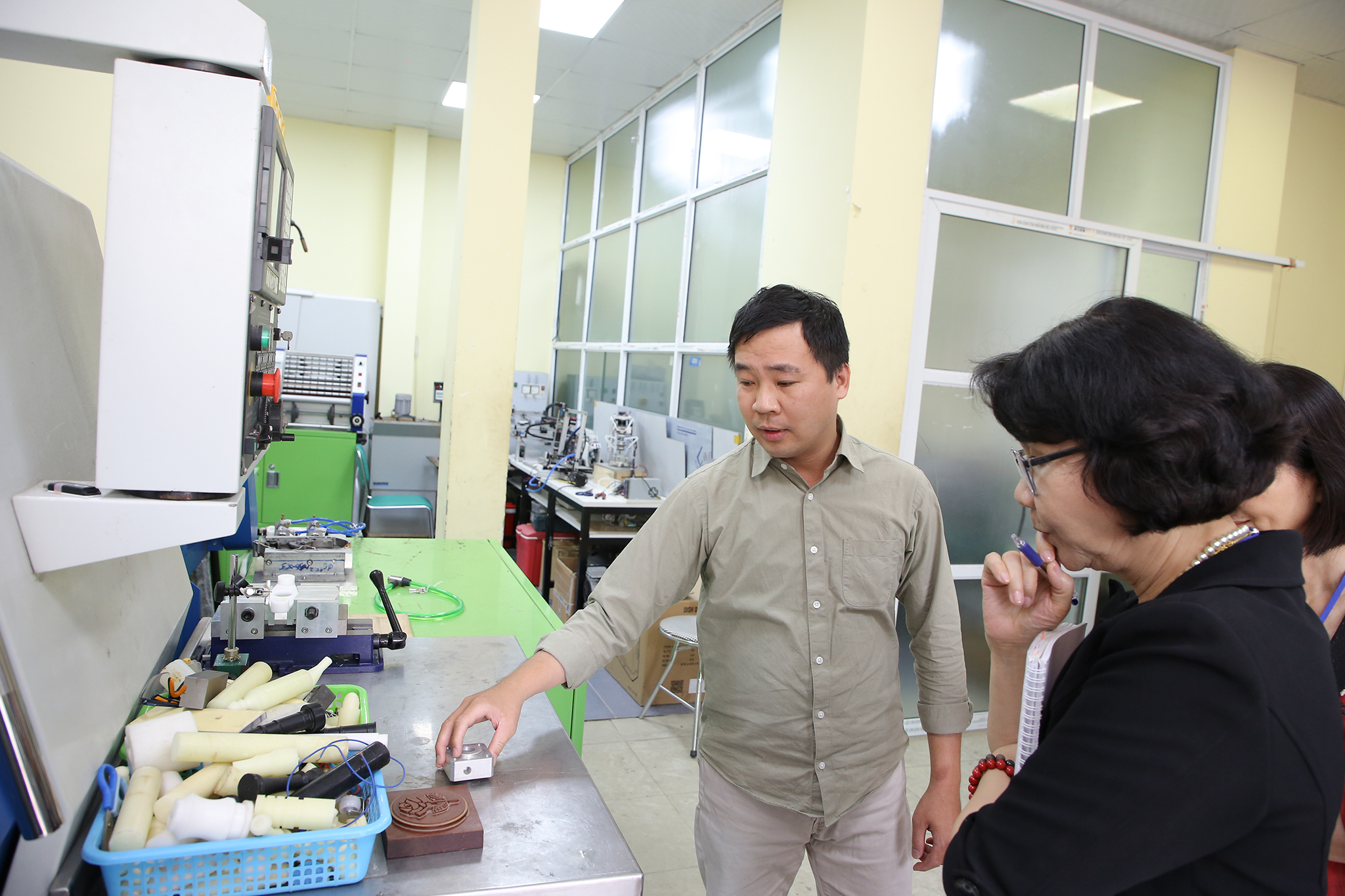 Đoàn đánh giá ngoài khảo sát cơ sở vật chất Khoa Cơ học kỹ thuật & Tự động hóa