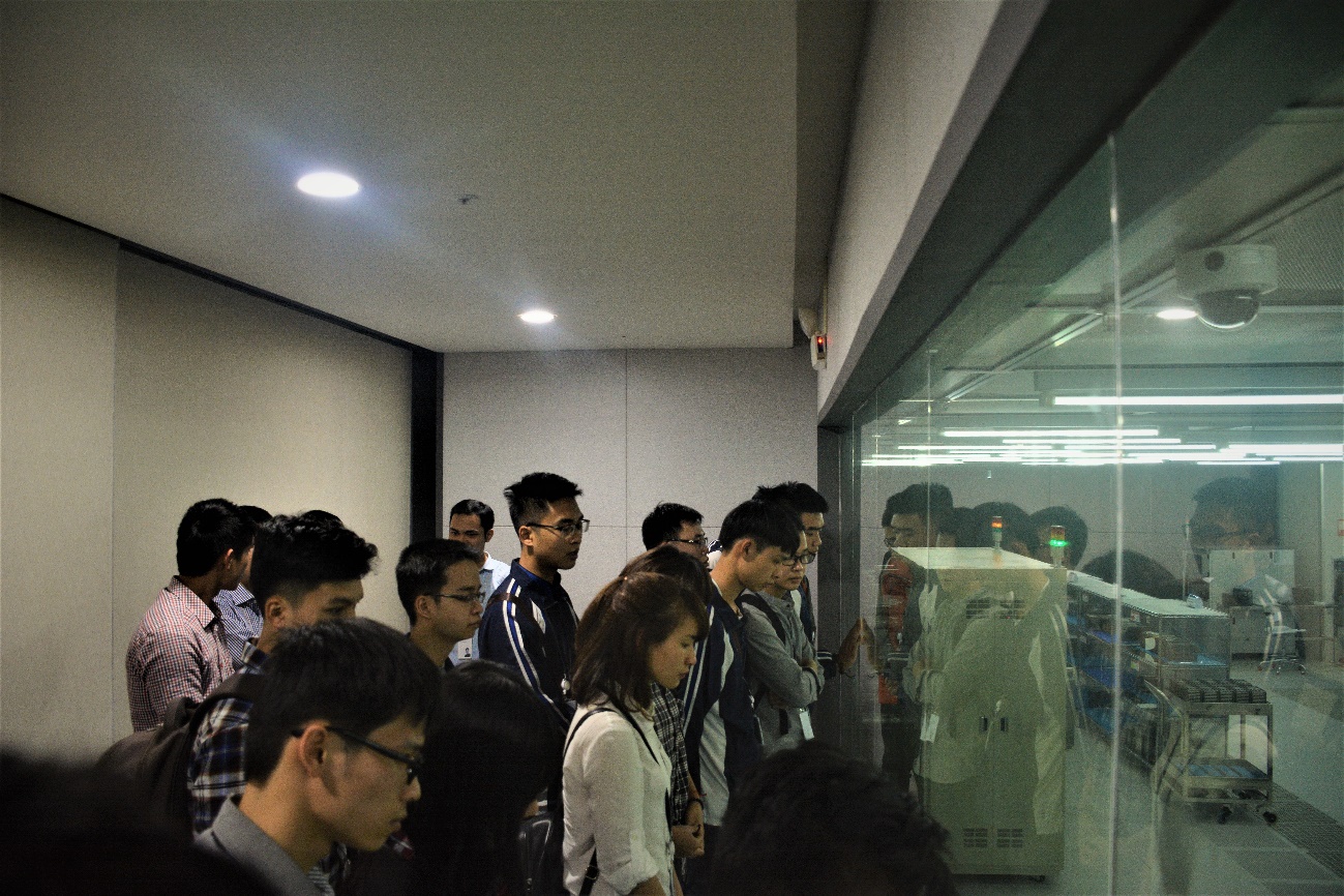 Trong chuyến thăm quan lần này, đoàn sinh viên và thầy cô cán bộ trong trường đã có buổi giao lưu với Tổng giám đốc công ty ông Cho Ji Tae và các cán bộ quản lý. Sau đó, đoàn đã đi thăm quan khu sản xuất trong phòng sạch của nhà máy.