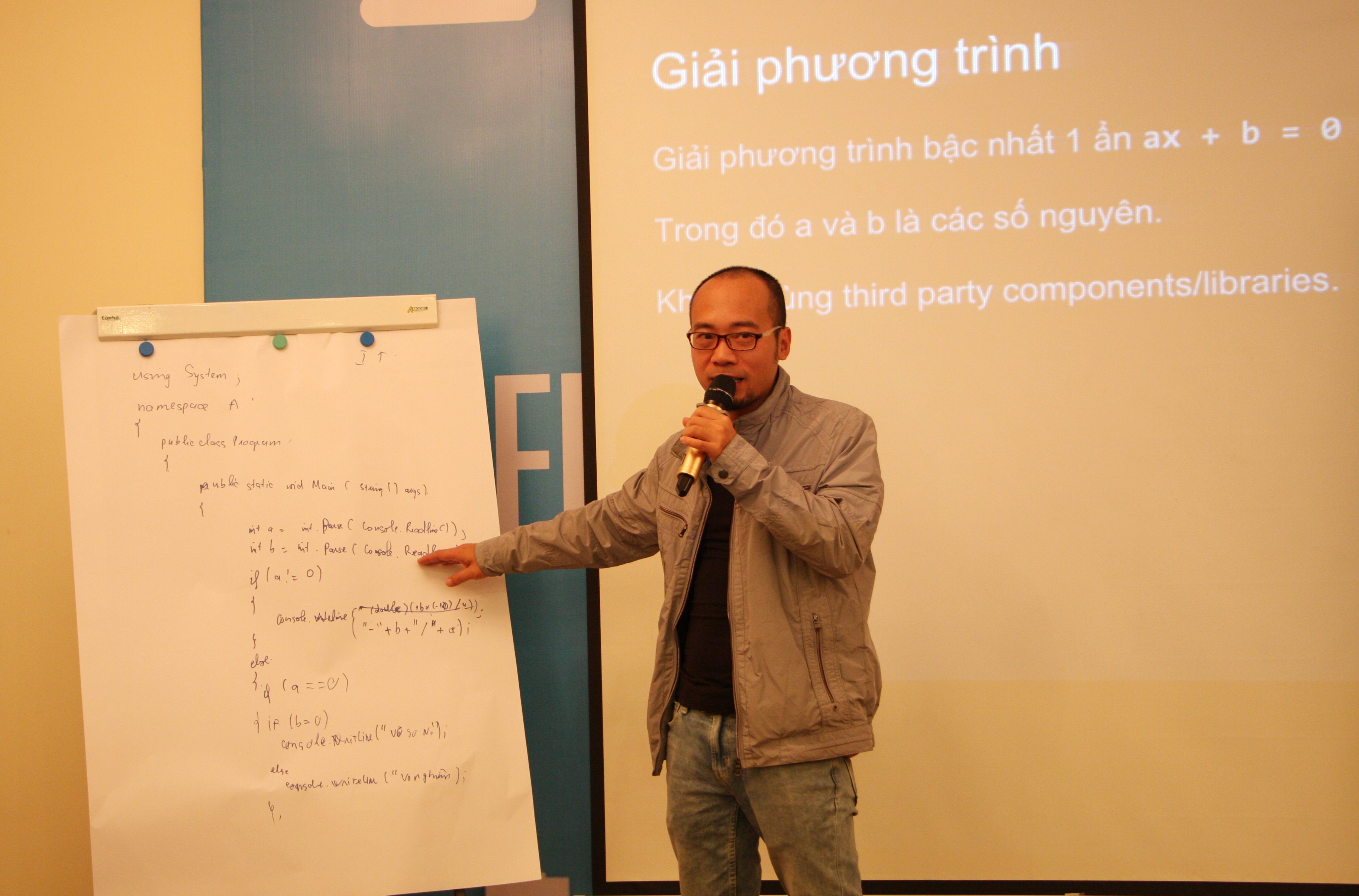 Ông Đào Minh Khánh – Trưởng phòng phát triển hệ thống nhận xét bài thi của một trong các đội tham dự