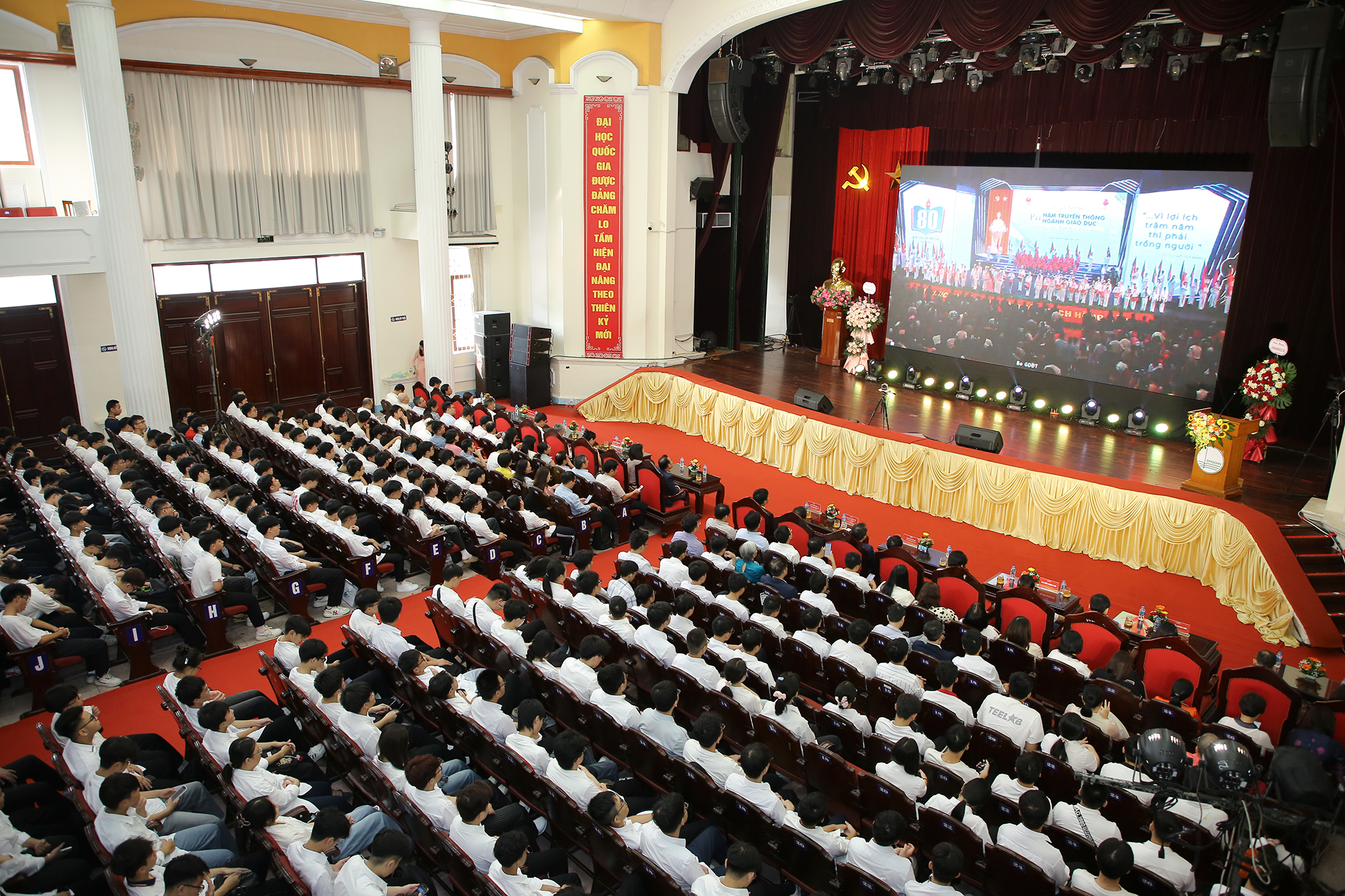 Ngày 5/9/2025, trong không khí kỷ niệm 80 năm truyền thống ngành Giáo dục và chào mừng năm học mới, Trường Đại học Công nghệ – Đại học Quốc gia Hà Nội (VNU-UET) được Đại học Quốc gia giao đầu mối tổ chức điểm cầu chung của ĐHQGHN, là 1 trong 15 điểm cầu trực tuyến toàn quốc, kết nối Hội nghị trực tuyến Lễ kỷ niệm 80 năm Bộ Quốc gia giáo dục (nay là Bộ Giáo dục và Đào tạo) và Lễ khai giảng năm học 2025-2026 của cả nước tại Trung tâm Hội nghị Quốc gia.