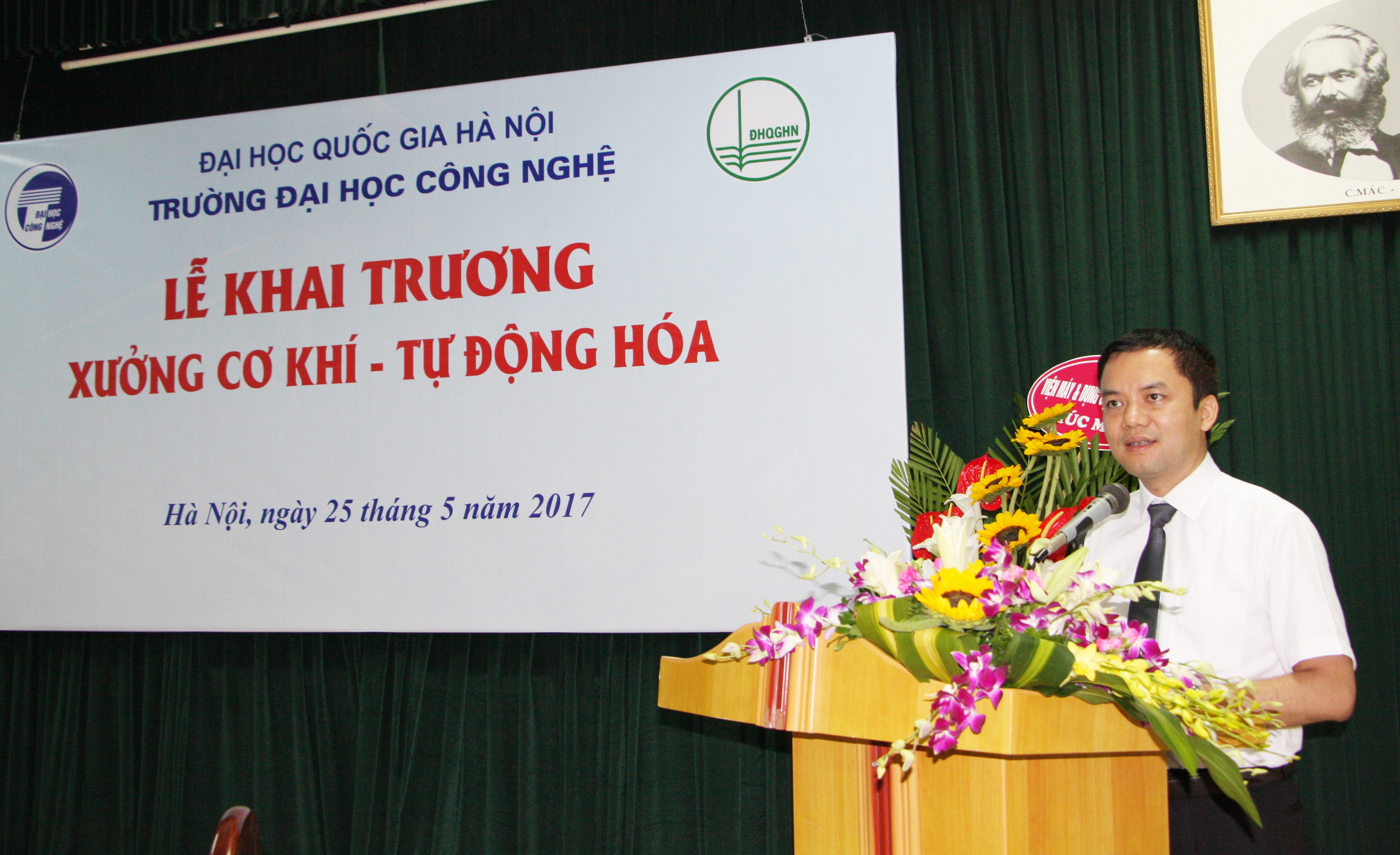 Phát biểu khai mạc, Hiệu trưởng Nguyễn Việt Hà khẳng định xưởng là kết quả sự đầu tư trọng điểm của ĐHQGHN trong lĩnh vực cơ khí và tự động hóa trong giai đoạn vừa qua thông qua một số dự án khác nhau được đầu tư tập trung với trang bị thiết bị hiện đại. Đây là nỗ lực về công tác tổ chức cao độ để hoàn thành Xưởng – không gian thực hành thực tập cho sinh viên, đặc biệt là khoa Cơ học kỹ thuật và Tự động hóa (CHKT&TĐH). Trường luôn đặt mục tiêu đào tạo chất lượng cao và nâng cao chất lượng đào tạo, chú trọng nâng cao năng lực và kỹ năng thực hành. Trong giai đoạn vừa qua, được sự quan tâm và đầu tư của ĐHQGHN Nhà trường đã có sự cải thiện đáng kể đầu tư trang thiết bị thực hành như phòng máy thực hành dự án phòng học thông minh, hoàn thiện bộ kit thực hành cho nhiều ngành đào tạo, đồng bộ chủ trương đưa phòng thí nghiệm vào hoạt động khai thác gắn chặt hoạt động nghiên cứu với đào tạo. Qua đó từng bước hướng tới nâng cao chất lượng thực hành, đào tạo sinh viên đáp ứng chuẩn đầu ra. Việc được đầu tư trọng điểm về lĩnh vực cơ khí – tự động hóa và cơ điện tử tạo thêm cơ hội, đẩy mạnh thực hành thực tập tiến tới chế tạo mẫu sản phẩm phần cứng đưa vào ứng dụng. Đồng thời sinh viên có cơ hội thực tập trên trang thiết bị sản xuất có tính công nghiệp, hiện đại và tiếp cận quy trình công nghiệp trong chế thử các thiết bị đưa vào thực tế ứng dụng.