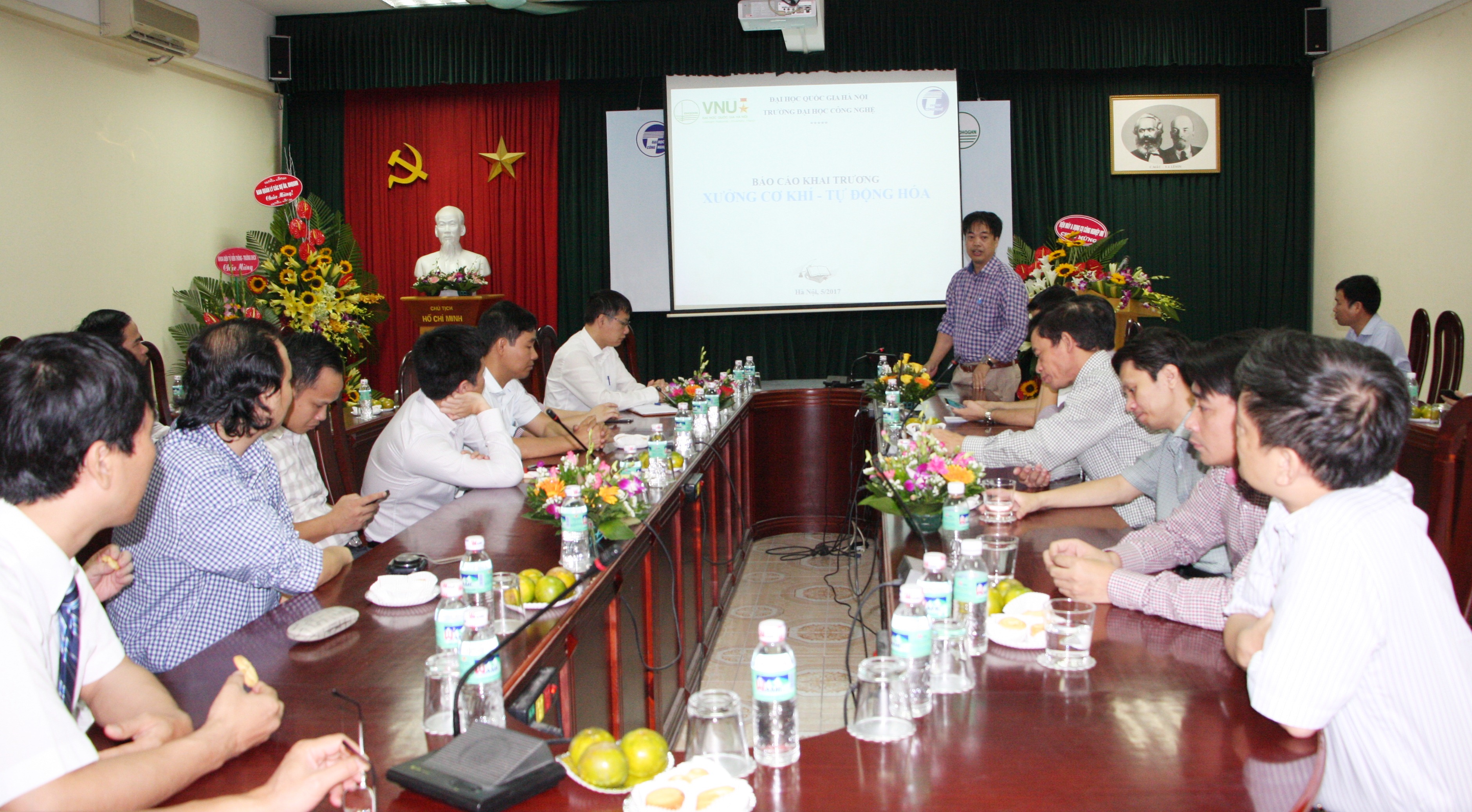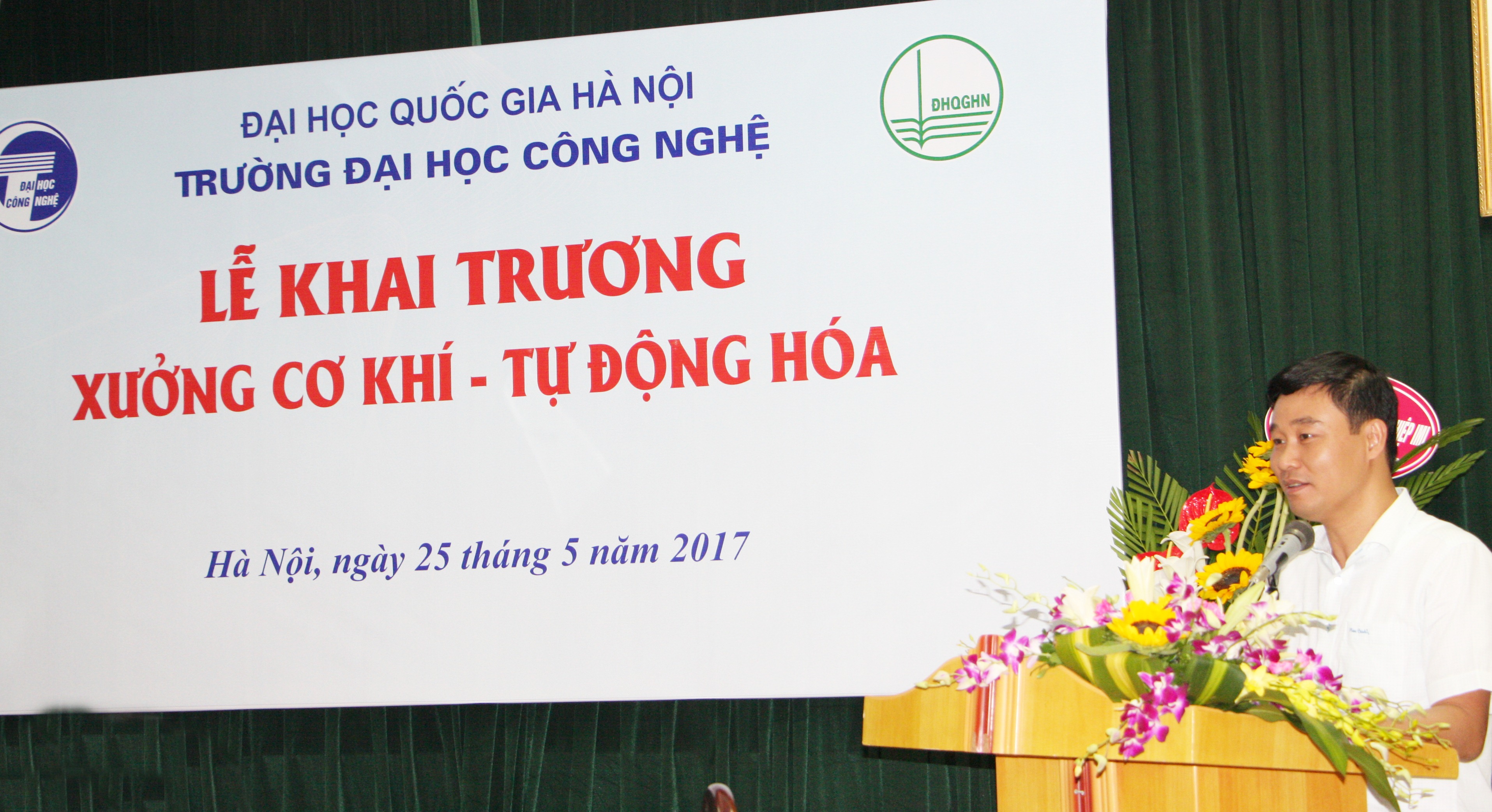 Phát biểu khai mạc, Hiệu trưởng Nguyễn Việt Hà khẳng định xưởng là kết quả sự đầu tư trọng điểm của ĐHQGHN trong lĩnh vực cơ khí và tự động hóa trong giai đoạn vừa qua thông qua một số dự án khác nhau được đầu tư tập trung với trang bị thiết bị hiện đại. Đây là nỗ lực về công tác tổ chức cao độ để hoàn thành Xưởng – không gian thực hành thực tập cho sinh viên, đặc biệt là khoa Cơ học kỹ thuật và Tự động hóa (CHKT&TĐH). Trường luôn đặt mục tiêu đào tạo chất lượng cao và nâng cao chất lượng đào tạo, chú trọng nâng cao năng lực và kỹ năng thực hành. Trong giai đoạn vừa qua, được sự quan tâm và đầu tư của ĐHQGHN Nhà trường đã có sự cải thiện đáng kể đầu tư trang thiết bị thực hành như phòng máy thực hành dự án phòng học thông minh, hoàn thiện bộ kit thực hành cho nhiều ngành đào tạo, đồng bộ chủ trương đưa phòng thí nghiệm vào hoạt động khai thác gắn chặt hoạt động nghiên cứu với đào tạo. Qua đó từng bước hướng tới nâng cao chất lượng thực hành, đào tạo sinh viên đáp ứng chuẩn đầu ra. Việc được đầu tư trọng điểm về lĩnh vực cơ khí – tự động hóa và cơ điện tử tạo thêm cơ hội, đẩy mạnh thực hành thực tập tiến tới chế tạo mẫu sản phẩm phần cứng đưa vào ứng dụng. Đồng thời sinh viên có cơ hội thực tập trên trang thiết bị sản xuất có tính công nghiệp, hiện đại và tiếp cận quy trình công nghiệp trong chế thử các thiết bị đưa vào thực tế ứng dụng.