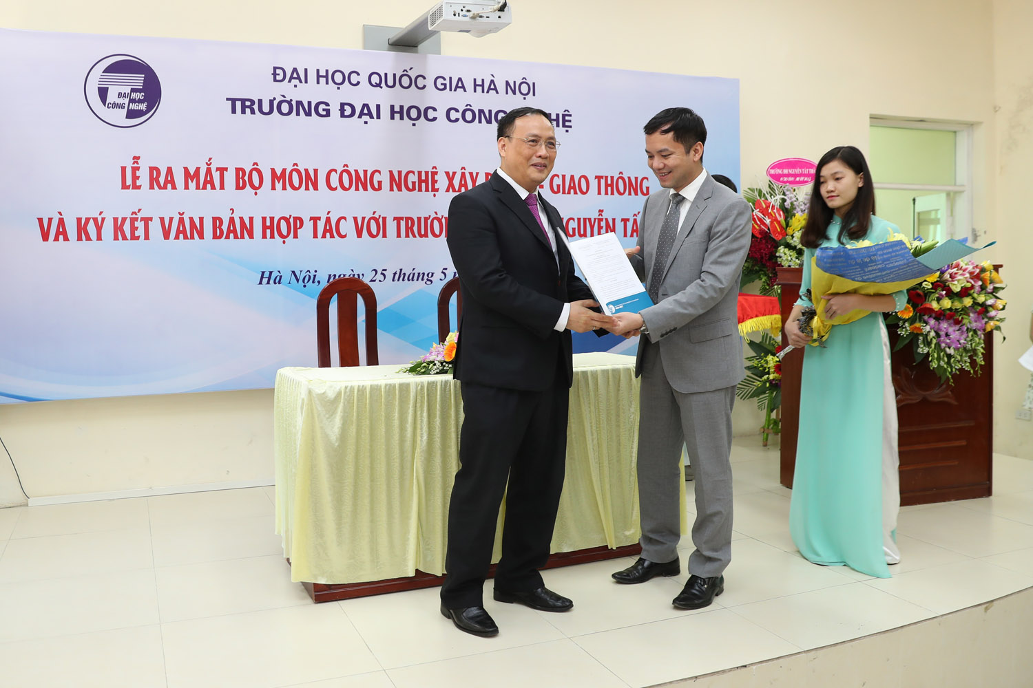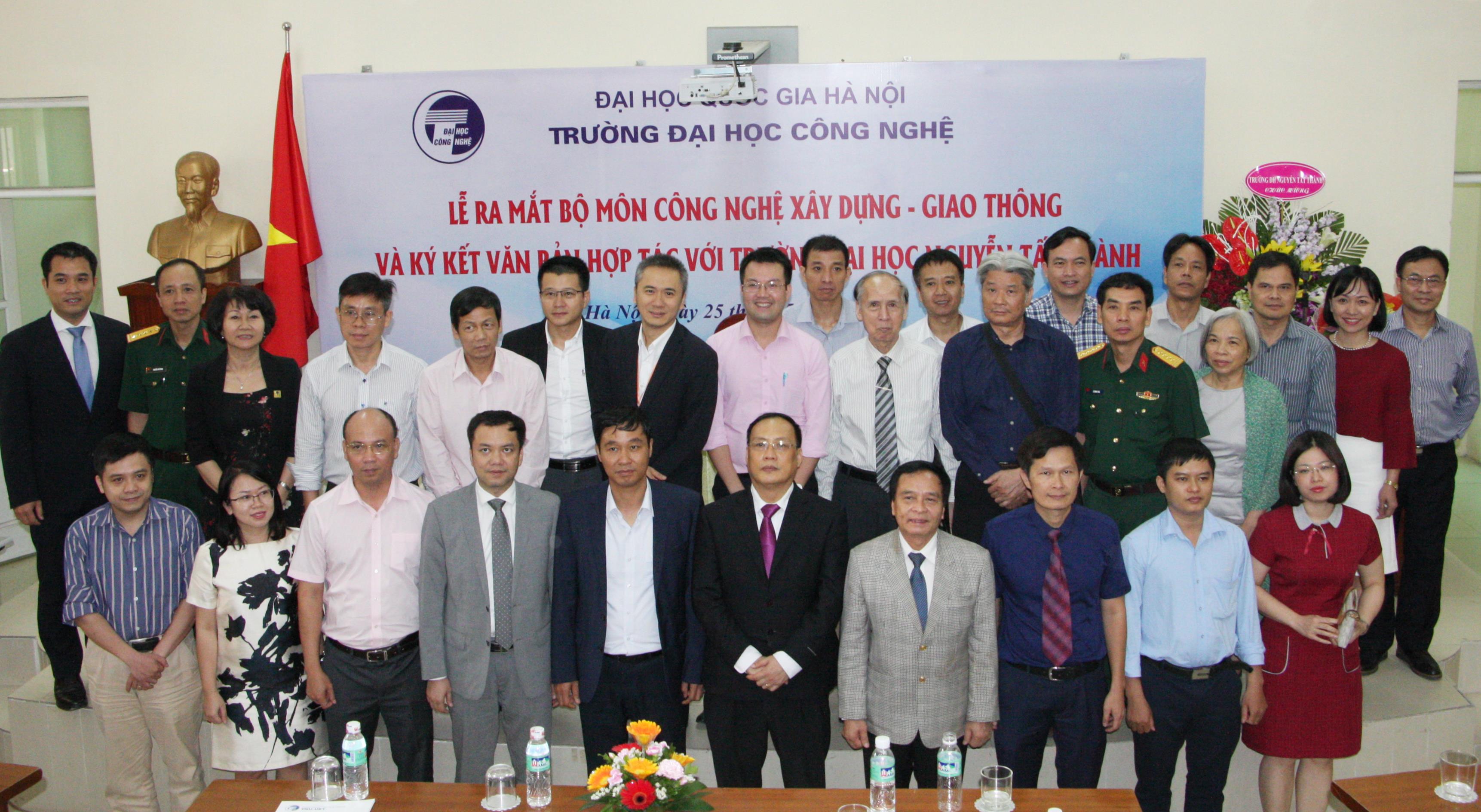 Nhân dịp kỷ niệm Ngày thành lập Trường 25/05/2004 – 25/05/2018, Trường Đại học Công nghệ (ĐHCN) – Đại học Quốc gia Hà Nội đã tổ chức Lễ ra mắt Bộ môn Công nghệ Xây dựng – Giao thông và ký kết hợp tác với Trường Đại học Nguyễn Tất Thành vào ngày 25/05/2018 tại nhà G3.