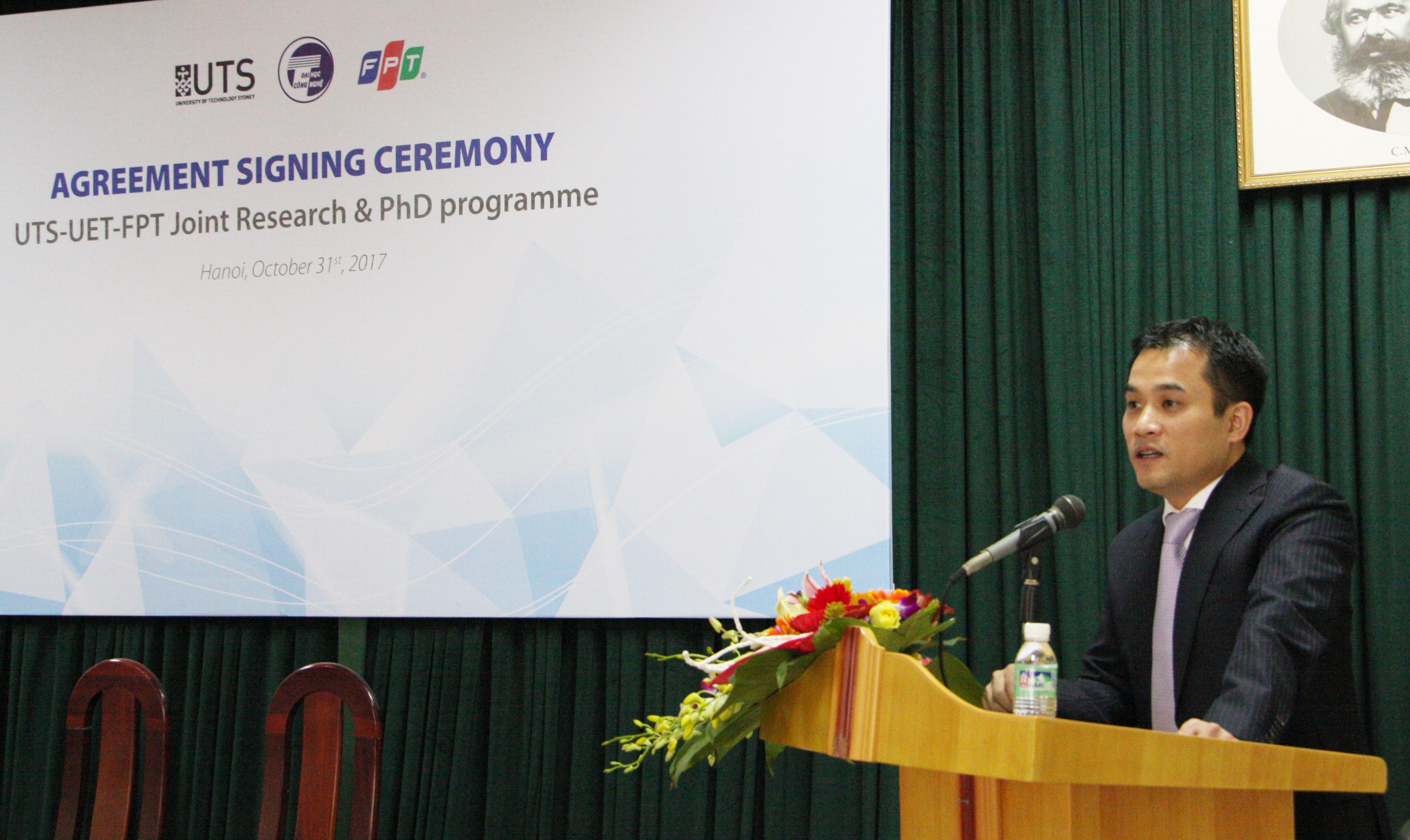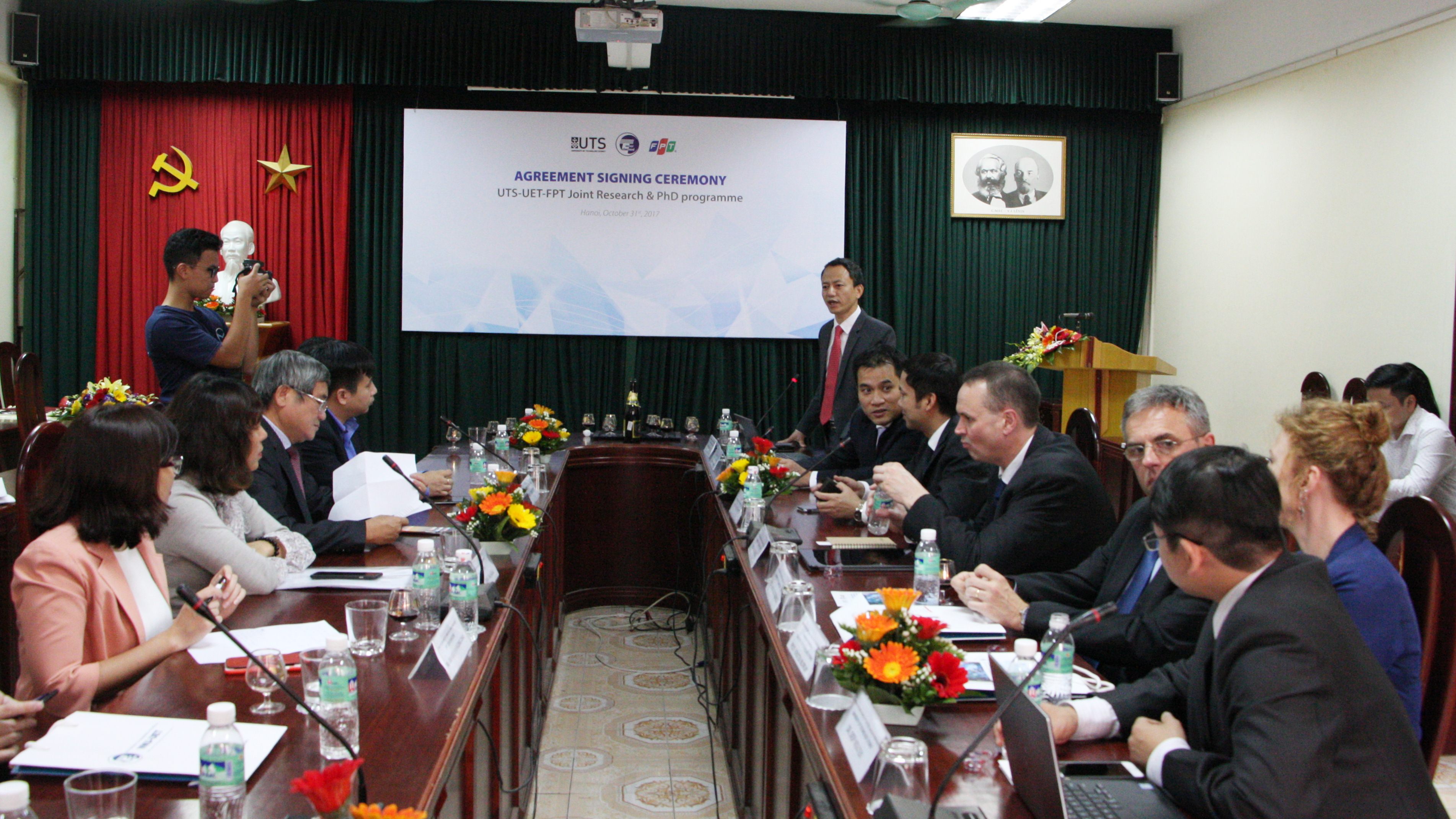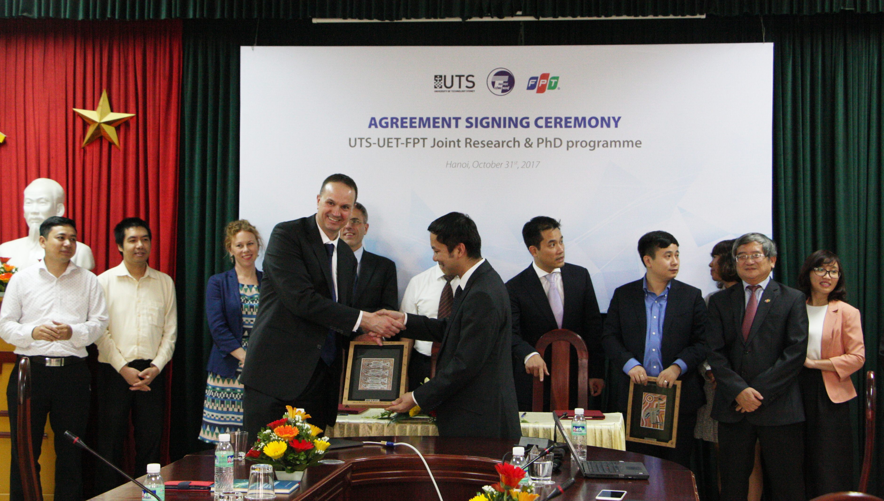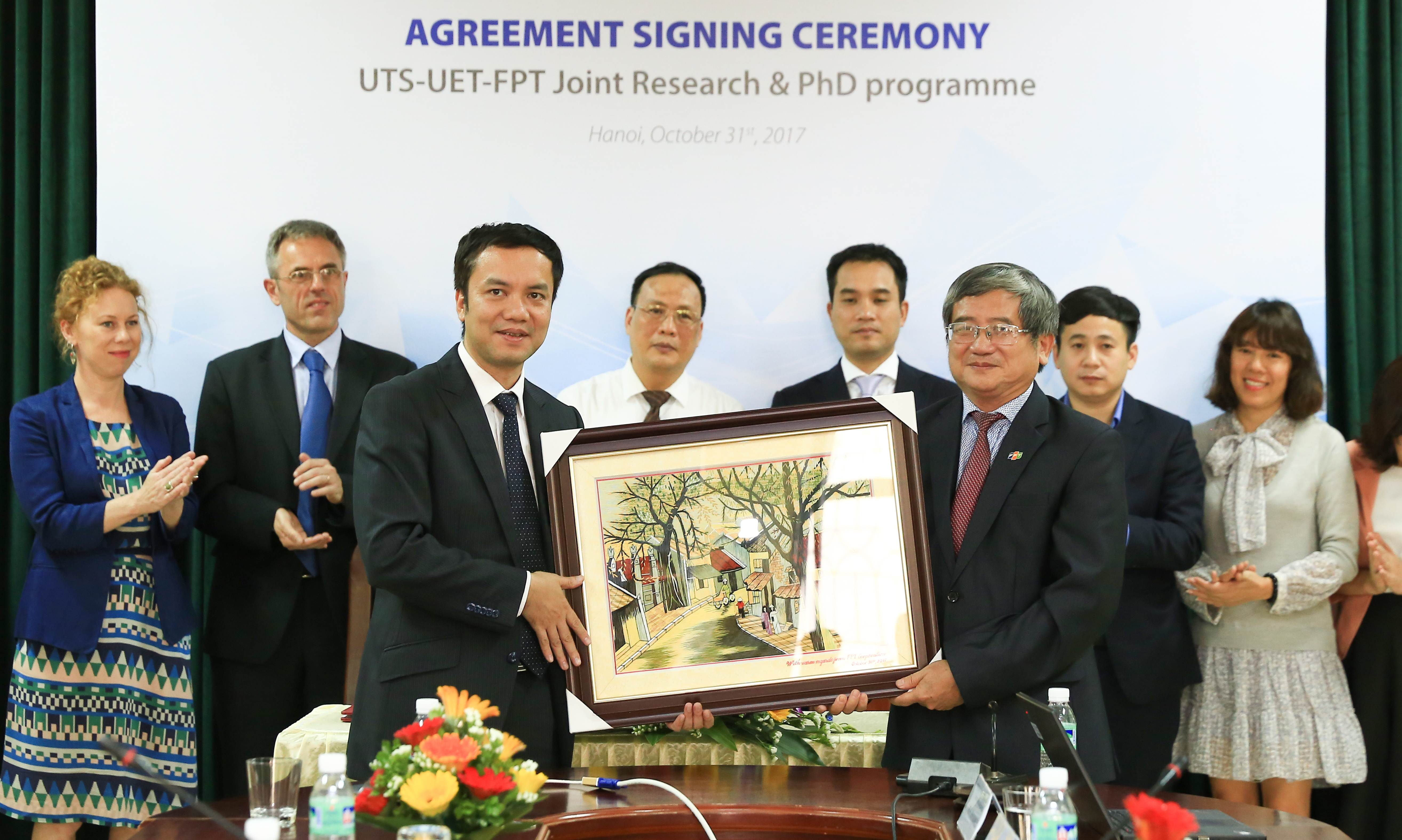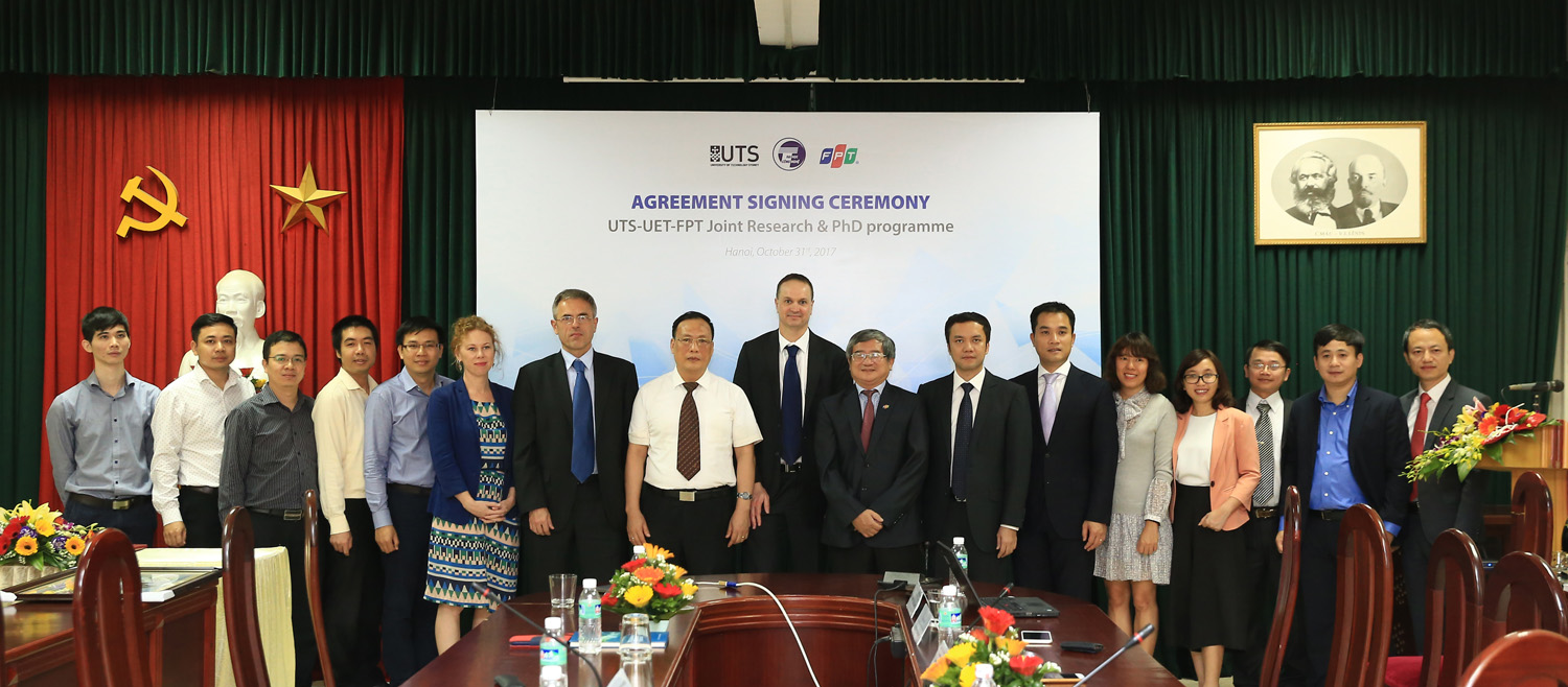 Ngày 31/10, Trường Đại học Công nghệ (ĐHCN) – Đại học Quốc gia Hà Nội, Đại học công nghệ Sydney (UTS) và Tập đoàn FPT đã ký thỏa thuận hợp tác trong việc đào tạo và phát triển nguồn nhân lực công nghệ chất lượng cao.