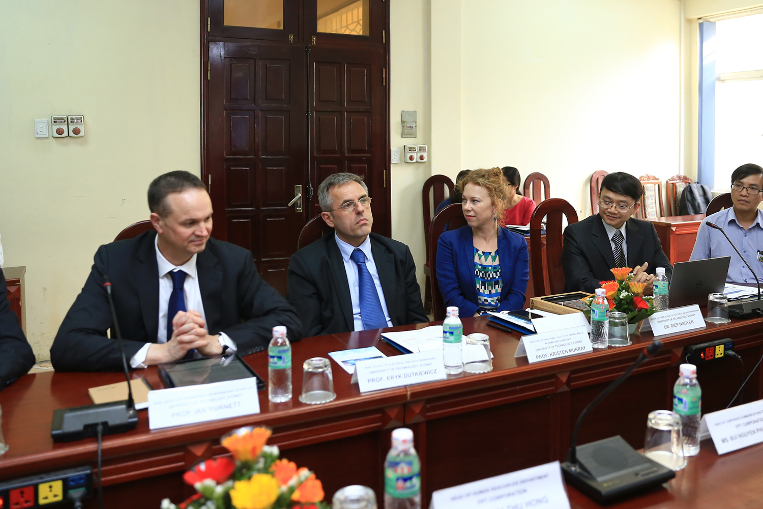 Tham dự lễ ký kết về phía Đại học Quốc gia Hà Nội (ĐHQGHN) có GS.TSKH Nguyễn Đình Đức – Trưởng ban Đào tạo. Về phía trường ĐHCN có PGS.TS. Nguyễn Việt Hà – Hiệu trưởng Nhà trường, PGS.TS. Phạm Bảo Sơn – Phó Hiệu trưởng, PGS.TS. Trần Xuân Tú – Trưởng phòng Khoa học công nghệ và Hợp tác phát triển. Về phía UTS có GS. Ian Burnett – Hiệu trưởng Trường Kỹ thuật và Công nghệ thông tin, GS. Eryk Dutkiewicz – Chủ nhiệm Khoa Điện toán và Truyền thông. Về phía Tập đoàn FPT có TS. Bùi Quang Ngọc – Tổng Giám đốc; Ông Lê Hồng Việt – Giám đốc.