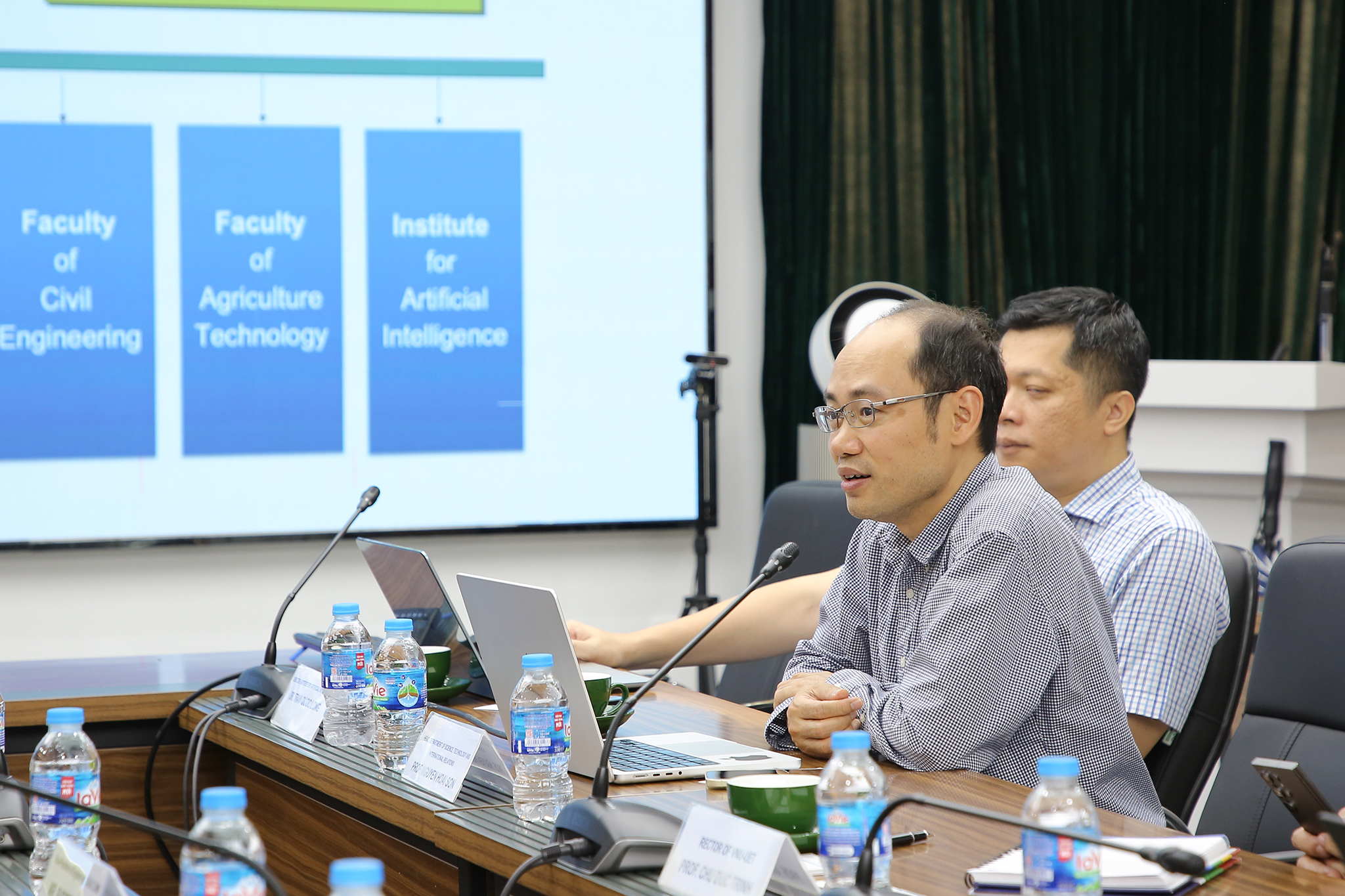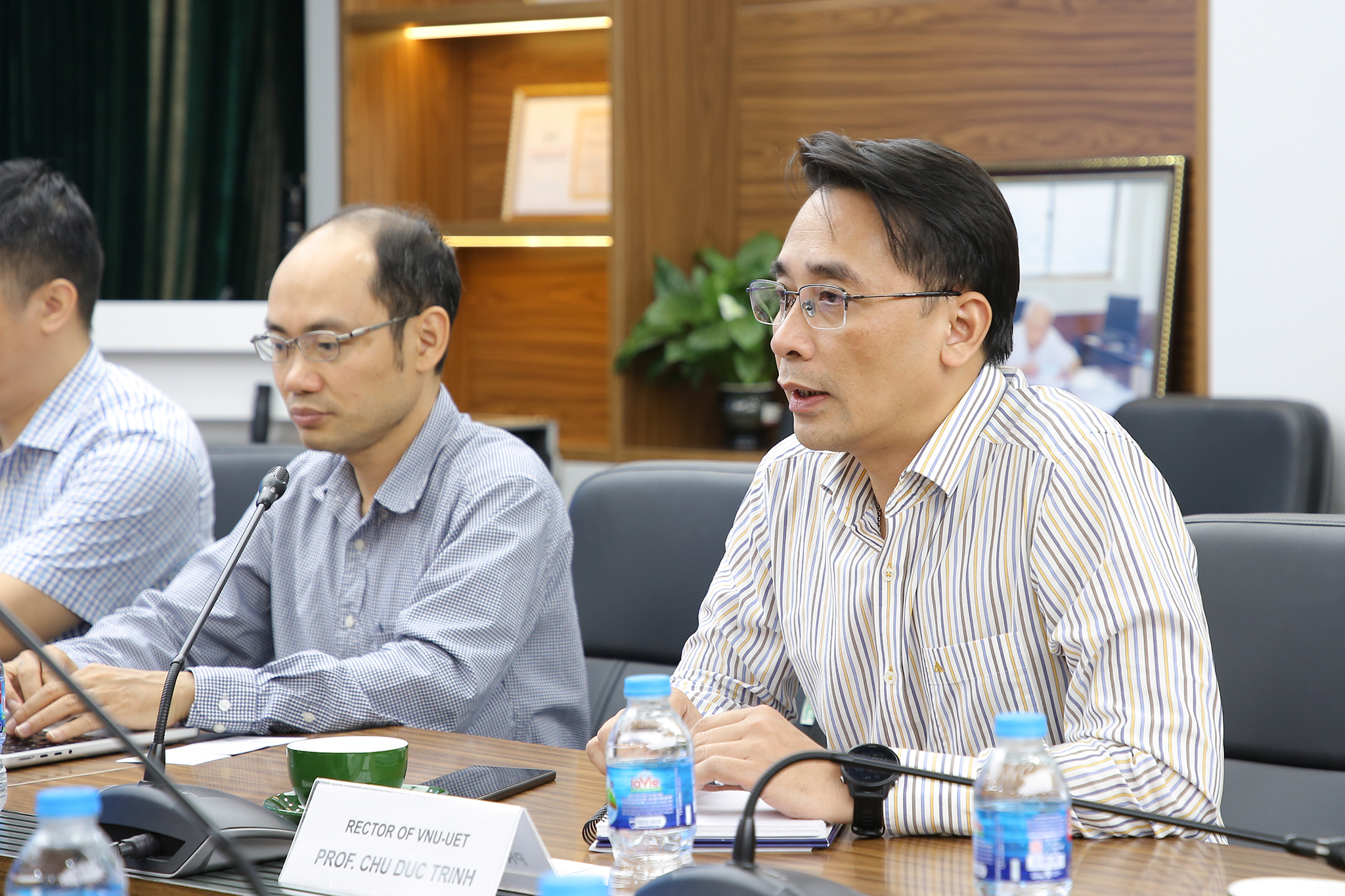 Trong phần trao đổi, đại diện UET gồm PGS.TS Nguyễn Hoài Sơn – Trưởng phòng Khoa học công nghệ và Hợp tác phát triển, cùng lãnh đạo Khoa Công nghệ thông tin, Khoa Điện tử Viễn thông và Viện Trí tuệ nhân tạo đã chia sẻ những nghiên cứu nổi bật của Nhà trường về 5G/6G, IoT và trí tuệ nhân tạo.