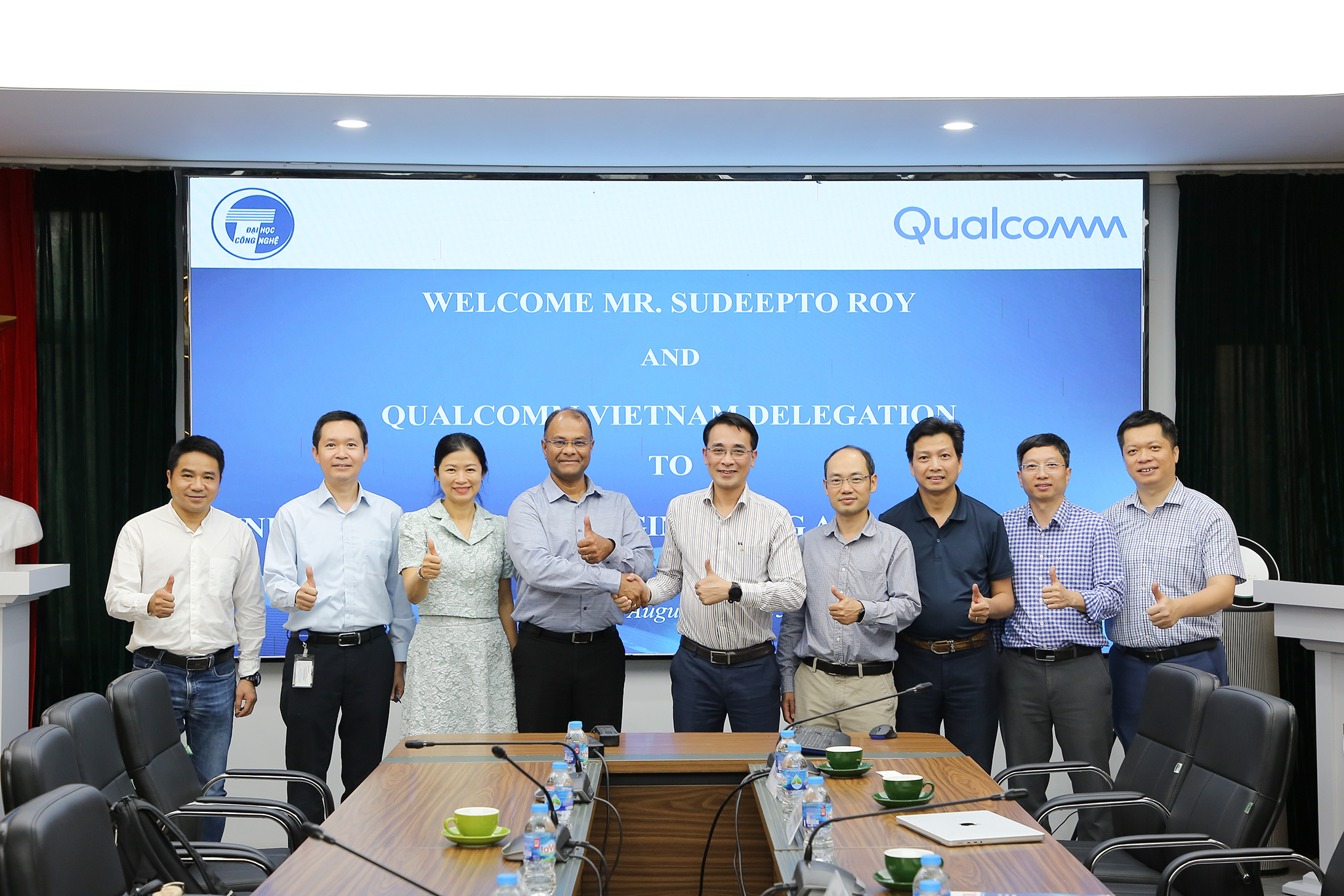 Ngày 19/08/2025, tại Trường Đại học Công nghệ – Đại học Quốc gia Hà Nội (VNU-UET), Hiệu trưởng GS.TS Chử Đức Trình đã có buổi làm việc với ông Sudeepto Roy, Phó Chủ tịch phụ trách kỹ thuật và chương trình thúc đẩy Đổi mới sáng tạo toàn cầu, Tập đoàn Qualcomm, cùng đoàn đại diện Qualcomm Việt Nam.