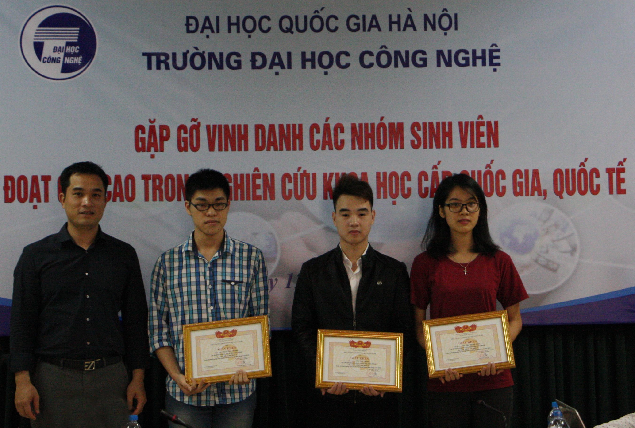Tại buổi lễ, Phó Hiệu trưởng Phạm Bảo Sơn đã gặp gỡ và vinh danh các nhóm sinh viên đạt thành tích xuất sắc trong các kỳ thi quốc gia, quốc tế vừa qua. Trong đó có các nhóm sinh viên, cụ thể nhóm ORLab do TS. Hà Minh Hoàng giảng viên khoa Công nghệ thông tin hướng dẫn đã đạt giải nhất cuộc thi Tối ưu sử dụng điện năng do drivendata.org tổ chức với giải thưởng 12.000 euro (hơn 300 triệu đồng); nhóm sinh viên Aspei do TS. Bùi Đình Tú giảng viên khoa Vật lý kỹ thuật và công nghệ nano hướng dẫn đã đạt giải Nhất và nhận được khoản đầu tư với số vốn 1 tỷ đồng, ngay tại cuộc thi chung kết cuộc thi “Hành trình Thành phố khởi nghiệp sáng tạo Startupcity Roadshow”; nhóm FIMO đã giành giải Nhất cuộc thi Cansat 2017-2018 – hay còn gọi là vệ tinh trong vỏ lon nước; nhóm SISLab của khoa Điện tử viễn thông đạt giải nhì tại Vòng Chung kết Cuộc thi Thiết kế điện tử quốc tế lần thứ 21 (the 21th LSI Contest).