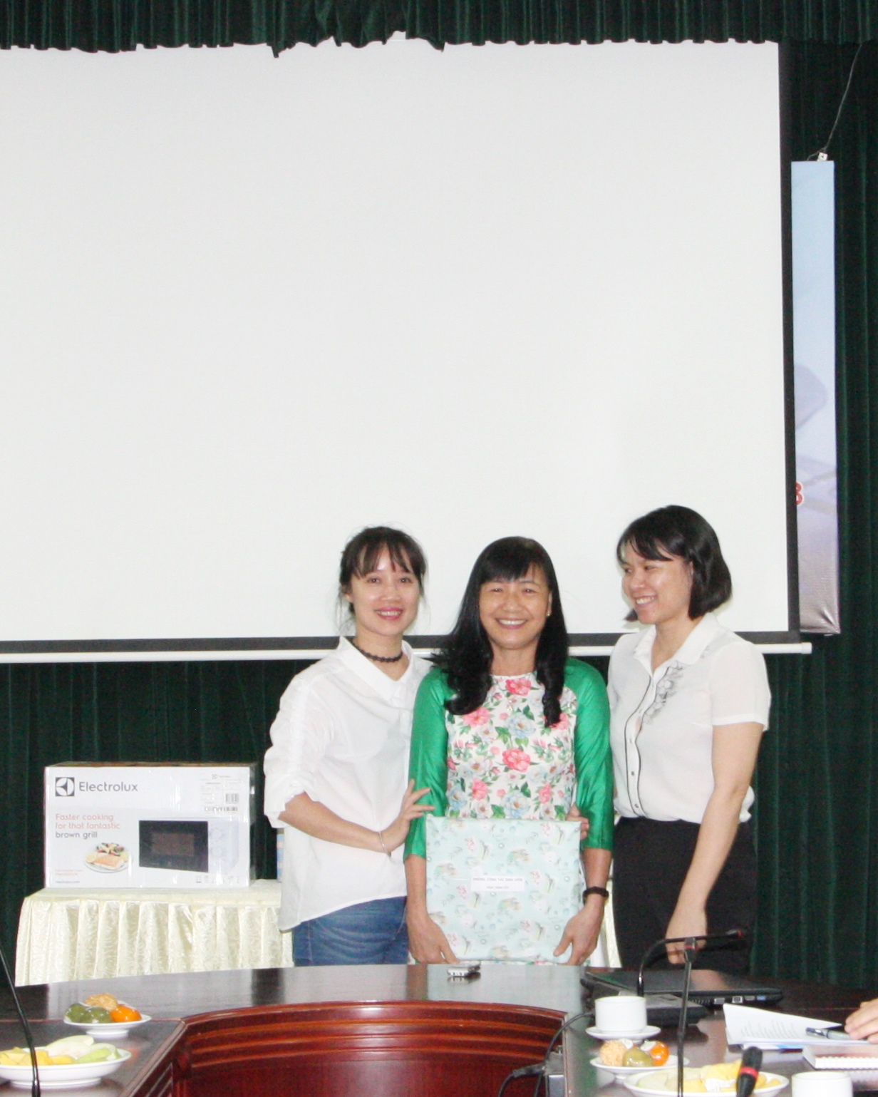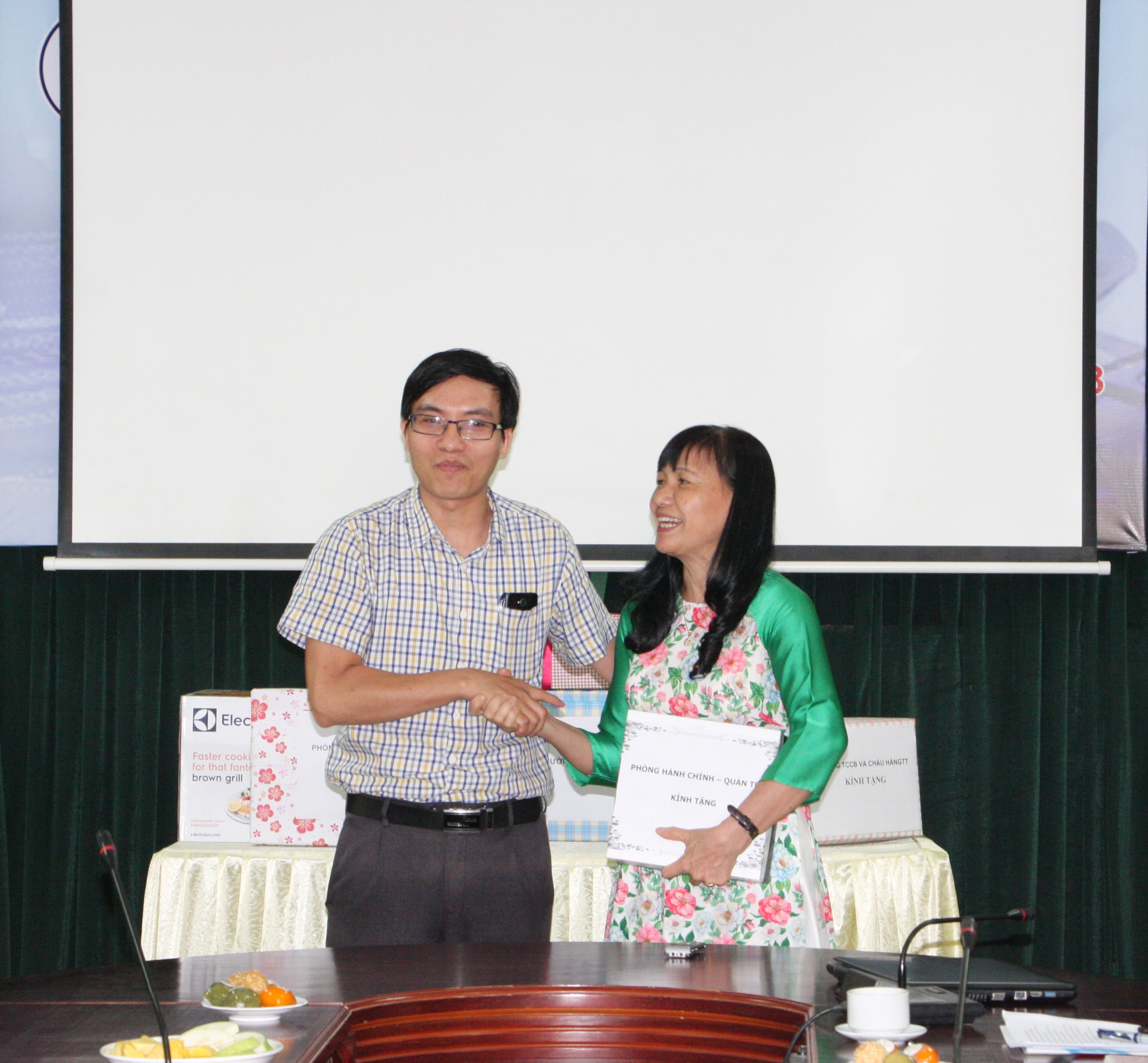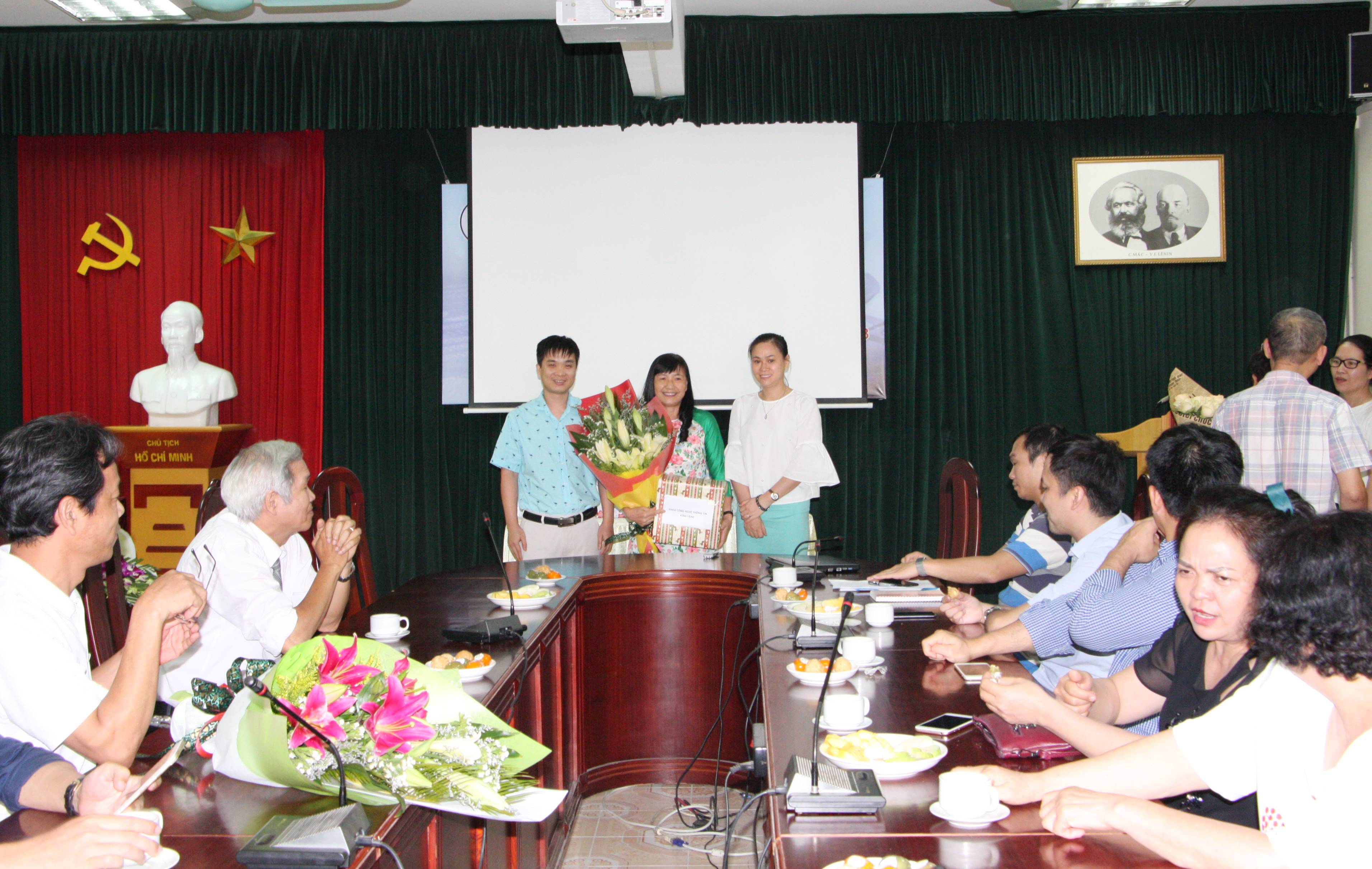 Phòng Khoa học công nghệ và hợp tác phát triển gửi tặng quà đến cô Nguyễn Thị Xoan