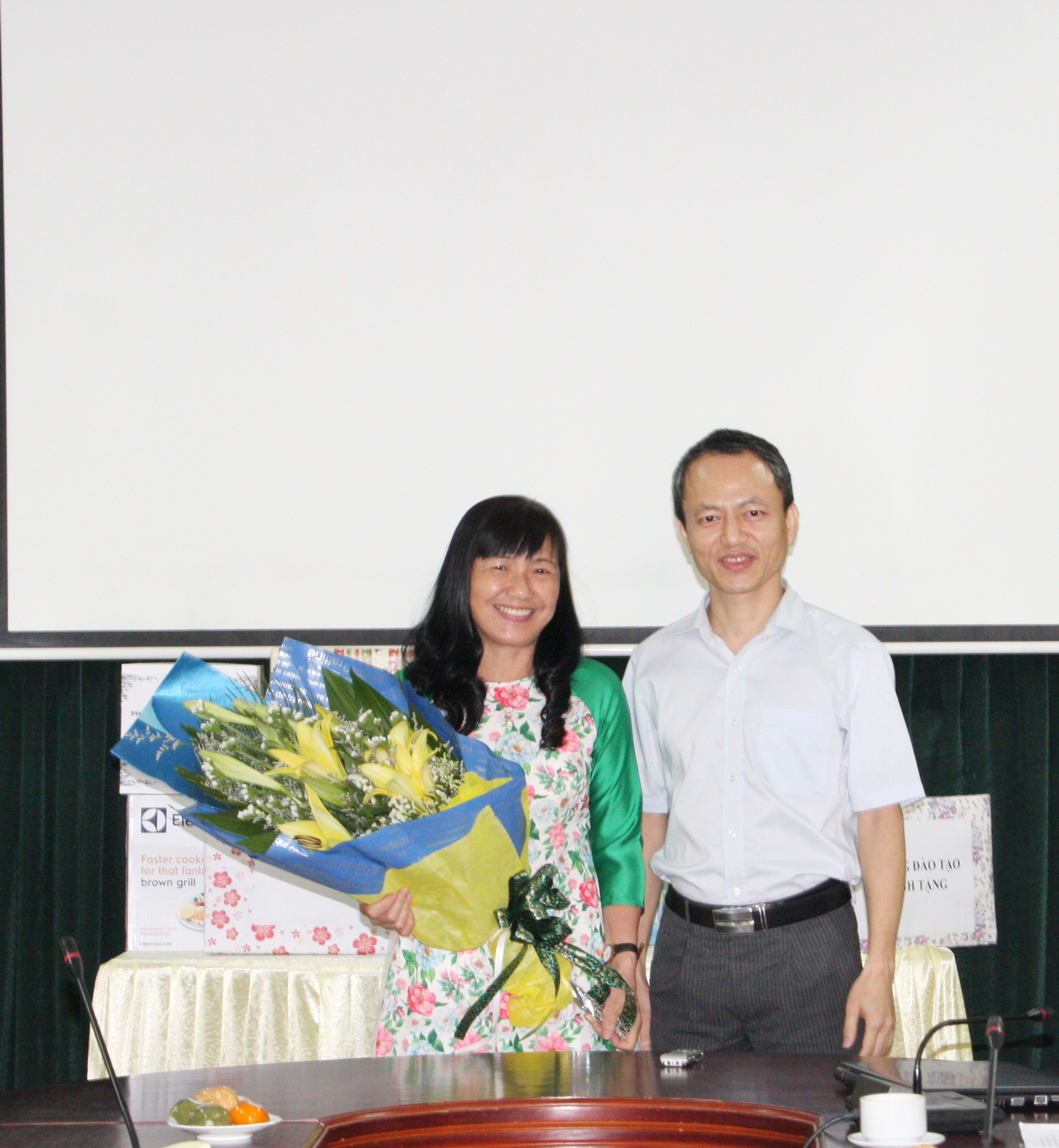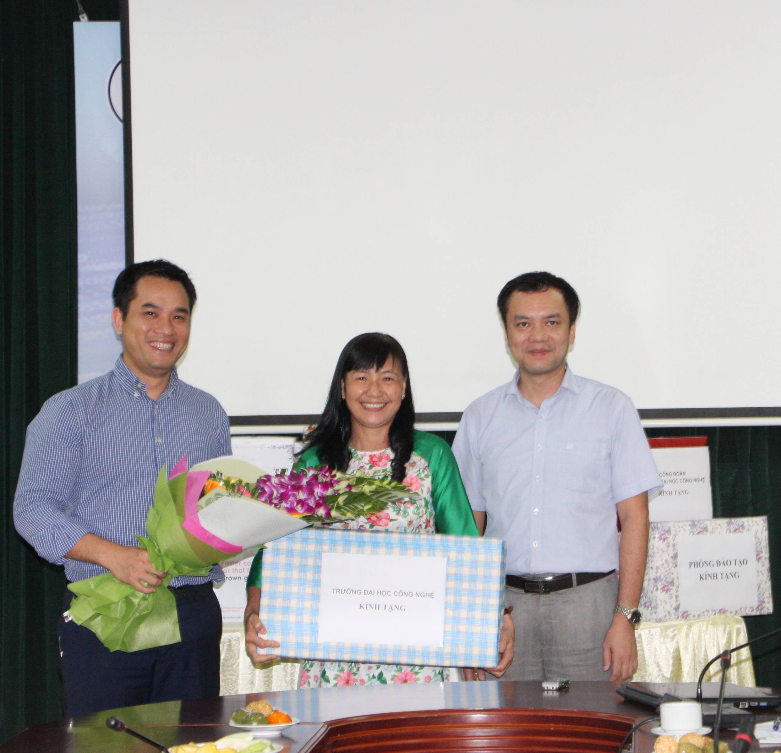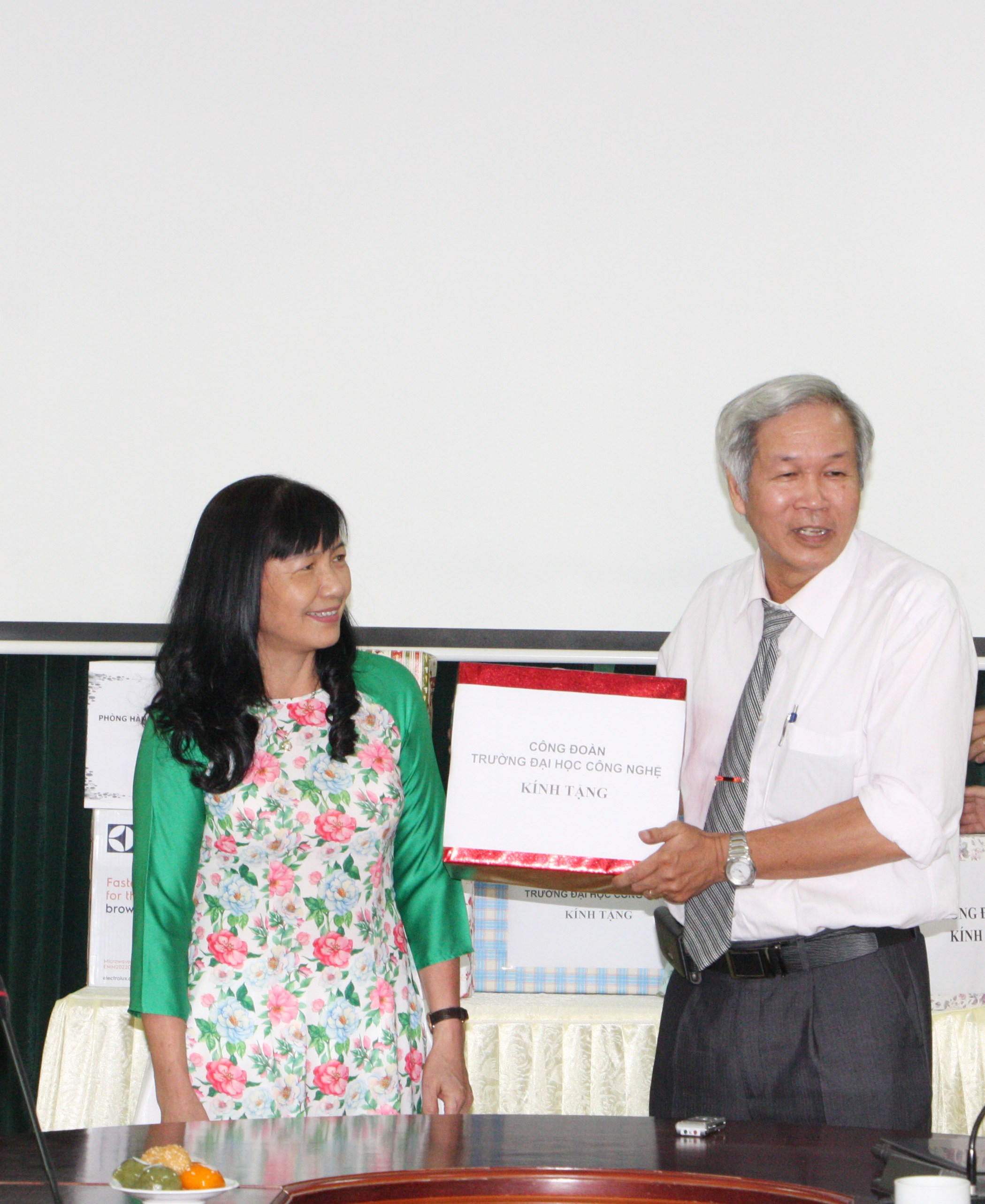 Phòng Khoa học công nghệ và hợp tác phát triển gửi tặng quà đến cô Nguyễn Thị Xoan