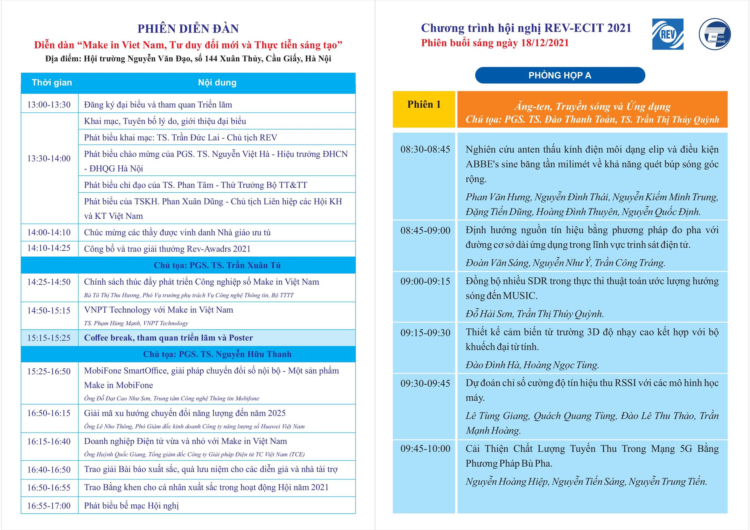 Nhân dịp kỷ niệm 25 năm thành lập, Khoa Điện tử – Viễn thông, Trường Đại học Công nghệ, Đại học Quốc gia Hà Nội đã phối hợp cùng Hội Vô tuyến – Điện tử Việt Nam (REV) tổ chức “Hội nghị Quốc gia lần thứ XXIV về Điện tử, Truyền thông và Công nghệ Thông tin” (National Conference on Electronics, Communications and Information Technology – REV-ECIT), vào ngày 18/12/2021.