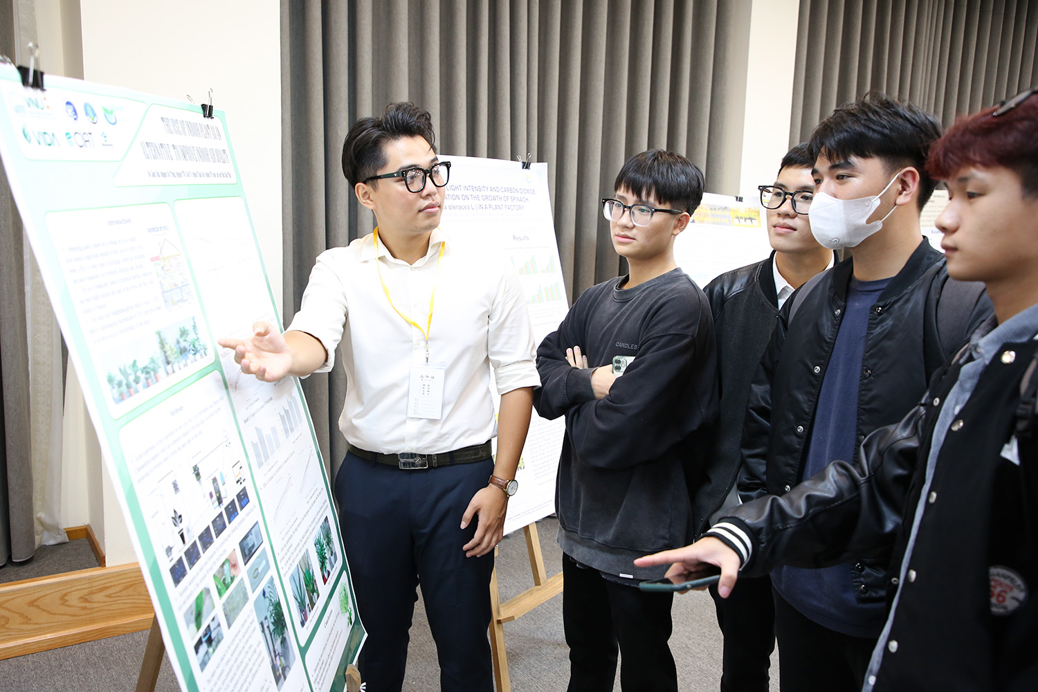 Sinh viên Khoa Công nghệ nông nghiệp giới thiệu báo cáo bằng poster