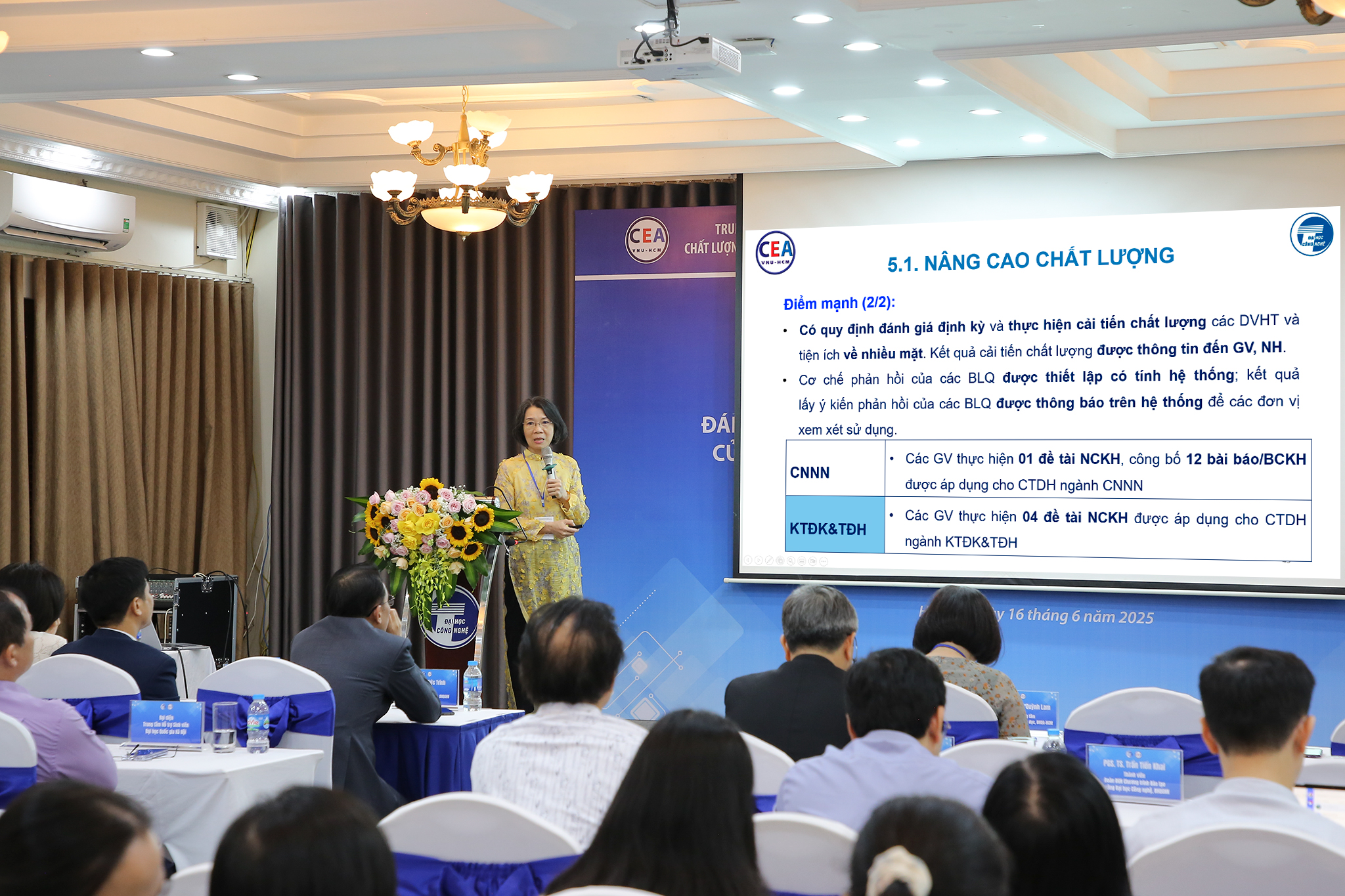 PGS.TS Trần Thị Hồng – Trưởng đoàn ĐGN đã tổng kết chung báo cáo của đoàn đánh giá ngoài, bên cạnh điểm nổi bật của Trường như có vị thế trong cộng đồng giáo dục Việt Nam; đội ngũ lãnh đạo, quản lý năng động, quyết tâm thực hiện đổi mới và không ngừng nâng cao chất lượng giáo dục và hội nhập quốc tế, có vai trò quan trọng trong tham gia xây dựng và tư vấn chính sách; đội ngũ giảng viên có năng lực chuyên môn cao, khả năng hội nhập quốc tế tốt; công tác nghiên cứu khoa học với giảng viên và sinh viên có nhiều công bố khoa học, đề tài nghiên cứu, bài báo … có tính ứng dụng cao; có kế hoạch triển khai chương trình đào tạo theo tiêu chuẩn ABET, giảng dạy trên Canvas theo đề cương học phần điều chỉnh theo dự án PHER; chất lượng tuyển sinh đầu vào và đầu ra cao, được nhà tuyển dụng đánh giá cao.