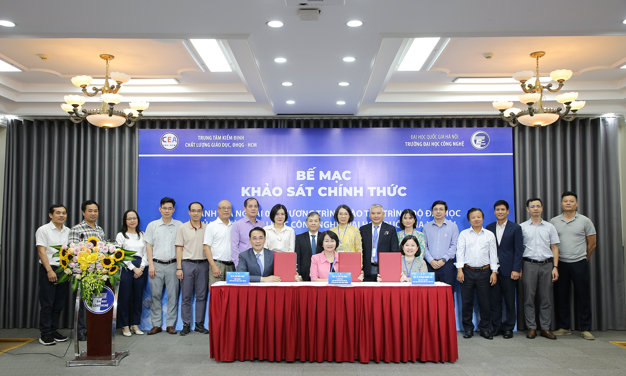 Cuối phiên bế mạc, đại diện Trường ĐH Công nghệ – ĐHQGHN, Đoàn đánh giá ngoài và Trung tâm KĐCLGD Đại học Quốc gia TP. Hồ Chí Minh đã cùng nhau ký biên bản hoàn thành đợt khảo sát chính thức 02 CTĐT theo tiêu chuẩn của Bộ Giáo dục và Đào tạo.