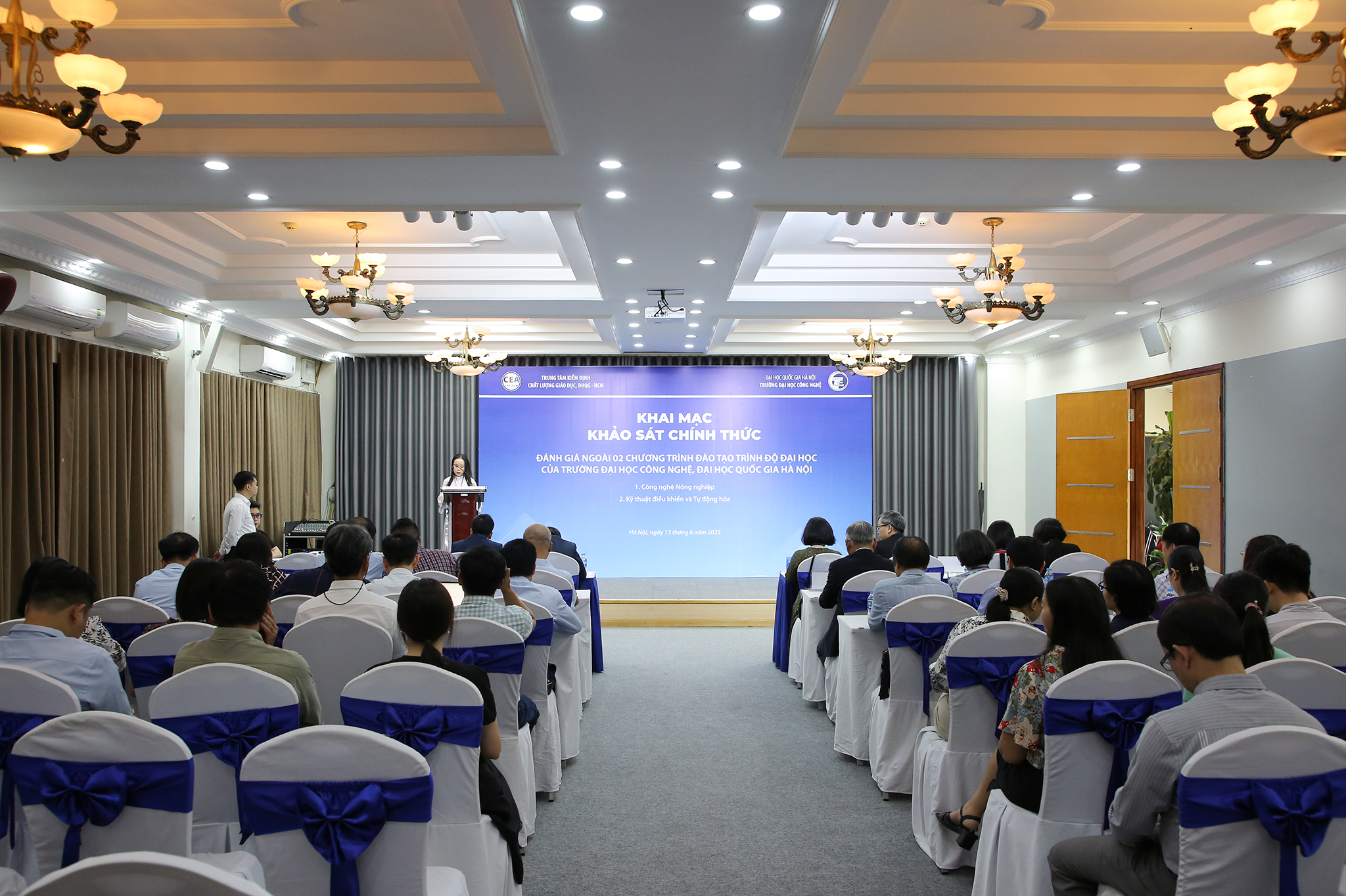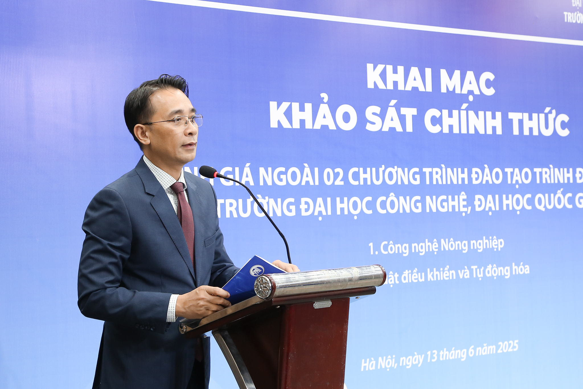 Sáng ngày 13/6/2025, Trung tâm Kiểm định chất lượng giáo dục (KĐCLGD) Đại học Quốc gia TP. Hồ Chí Minh đã phối hợp với Trường Đại học Công nghệ – ĐHQGHN tổ chức Lễ khai mạc đợt khảo sát chính thức đánh giá ngoài 02 chương trình đào tạo trình độ đại học gồm ngành Kỹ thuật điều khiển và Tự động hóa, ngành Công nghệ nông nghiệp theo quy trình kiểm định chất lượng giáo dục của Bộ Giáo dục và Đào tạo.