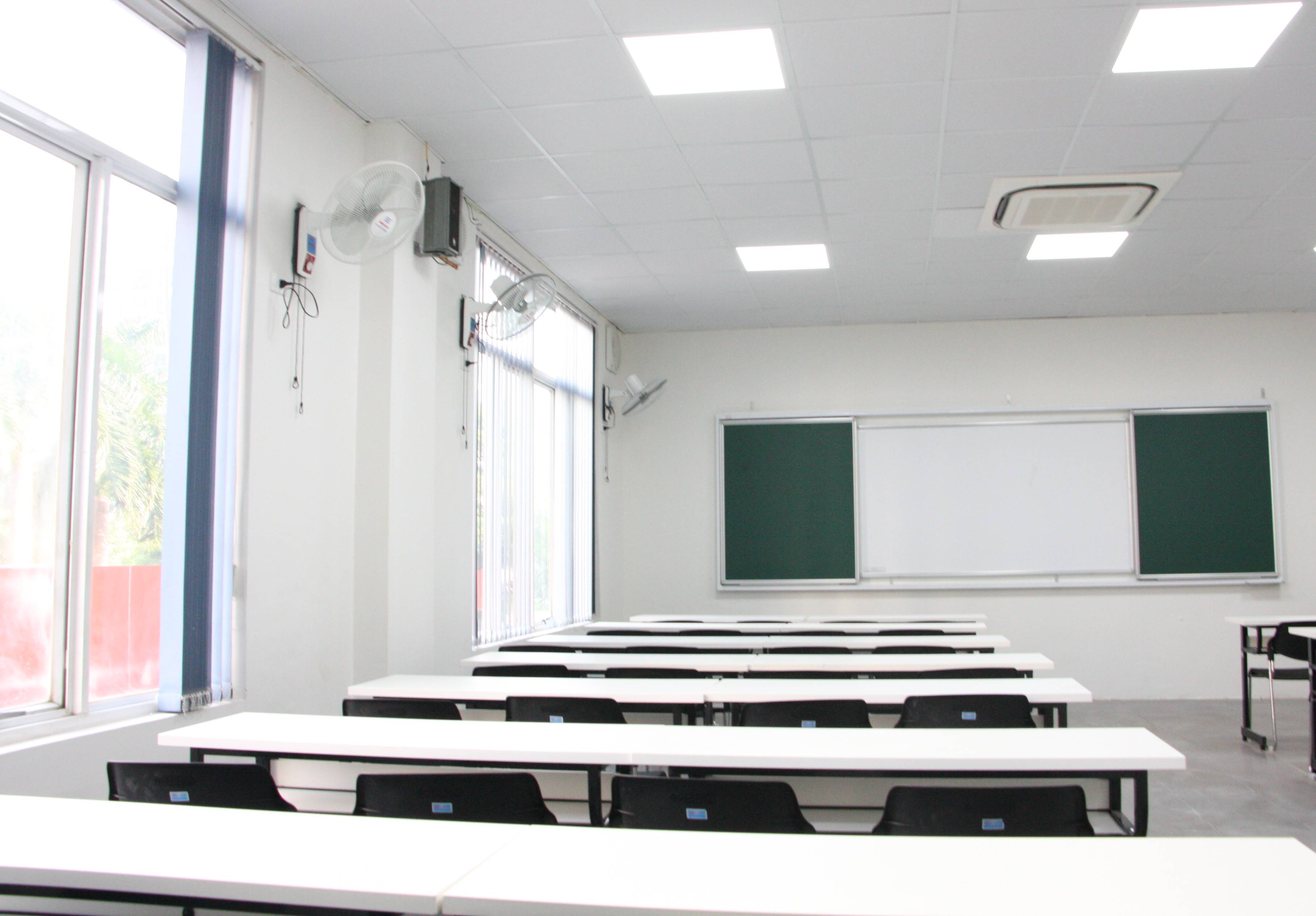 15 phòng học có sức chứa từ 40-60 chỗ được đầu tư đồng bộ, hiện đại