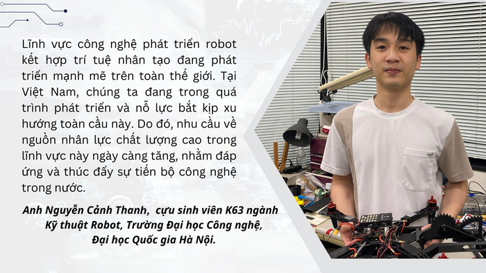 Anh Thanh đánh giá, Lĩnh vực công nghệ phát triển robot kết hợp trí tuệ nhân tạo đang phát triển mạnh mẽ trên toàn thế giới. Tại Việt Nam, chúng ta đang trong quá trình phát triển và nỗ lực bắt kịp xu hướng toàn cầu này. Do đó, nhu cầu về nguồn nhân lực chất lượng cao trong lĩnh vực này ngày càng tăng, nhằm đáp ứng và thúc đẩy sự tiến bộ công nghệ trong nước.