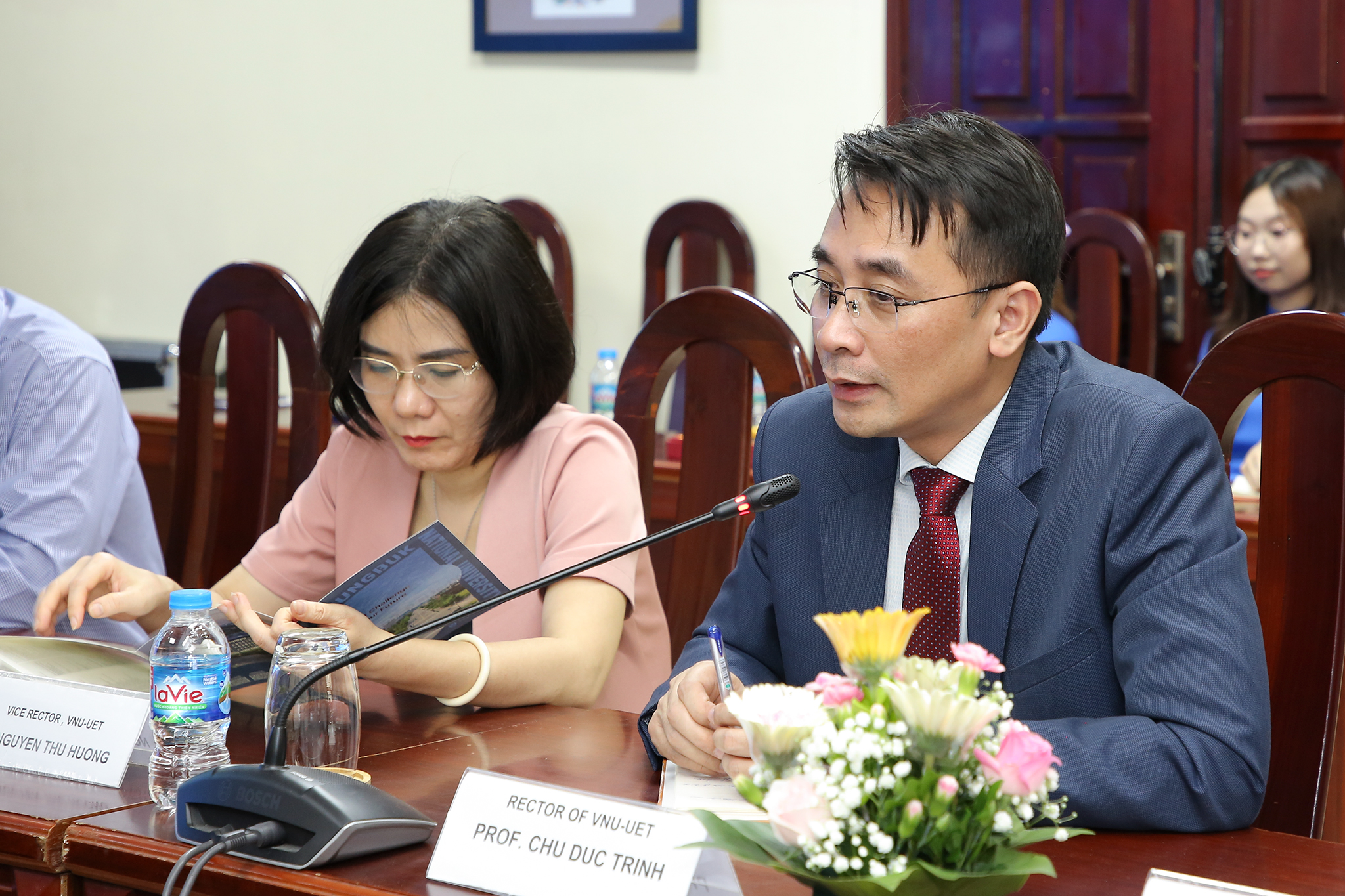 Với mục tiêu thúc đẩy hợp tác quốc tế đem lại cơ hội giáo dục quốc tế cho sinh viên các Khoa, và cơ hội hợp tác của giảng viên giữa hai trường, trao đổi tại lễ ký kết GS.TS Chử Đức Trình – Hiệu trưởng Trường ĐH Công nghệ và GS.TS. Chang Seop Koh – Chủ tịch Trường ĐH Quốc gia Chungbuk đã giới thiệu về các hoạt động đào tạo, nghiên cứu khoa học và hợp tác quốc tế. Bên cạnh đó, lãnh đạo hai trường cùng chia sẻ niềm vui khi mối quan hệ hợp tác được triển khai từ nhiều năm trước bằng các hoạt động trao đổi sinh viên, giảng viên UET tại Trường ĐH Quốc gia Chungbuk và hợp tác đào tạo giữa CBNU với Khoa Công nghệ Nông nghiệp. Lễ ký kết đã đánh dấu bước phát triển mới trong mối quan hệ hợp tác giữa hai trường đại học, mở ra nhiều cơ hội và triển vọng cho sinh viên hội nhập toàn cầu.
