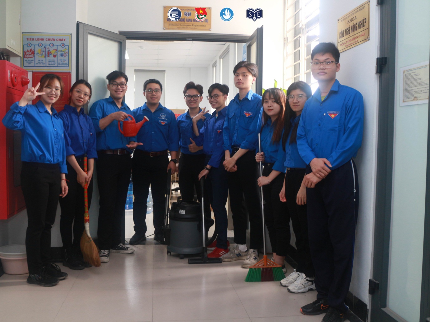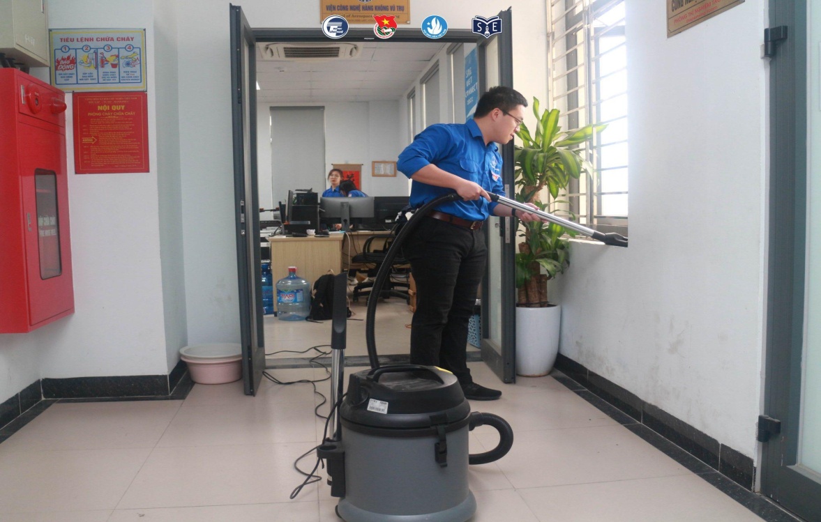 Liên chi Viện Công nghệ Hàng không Vũ trụ tham gia vệ sinh các phòng học, phòng làm việc.