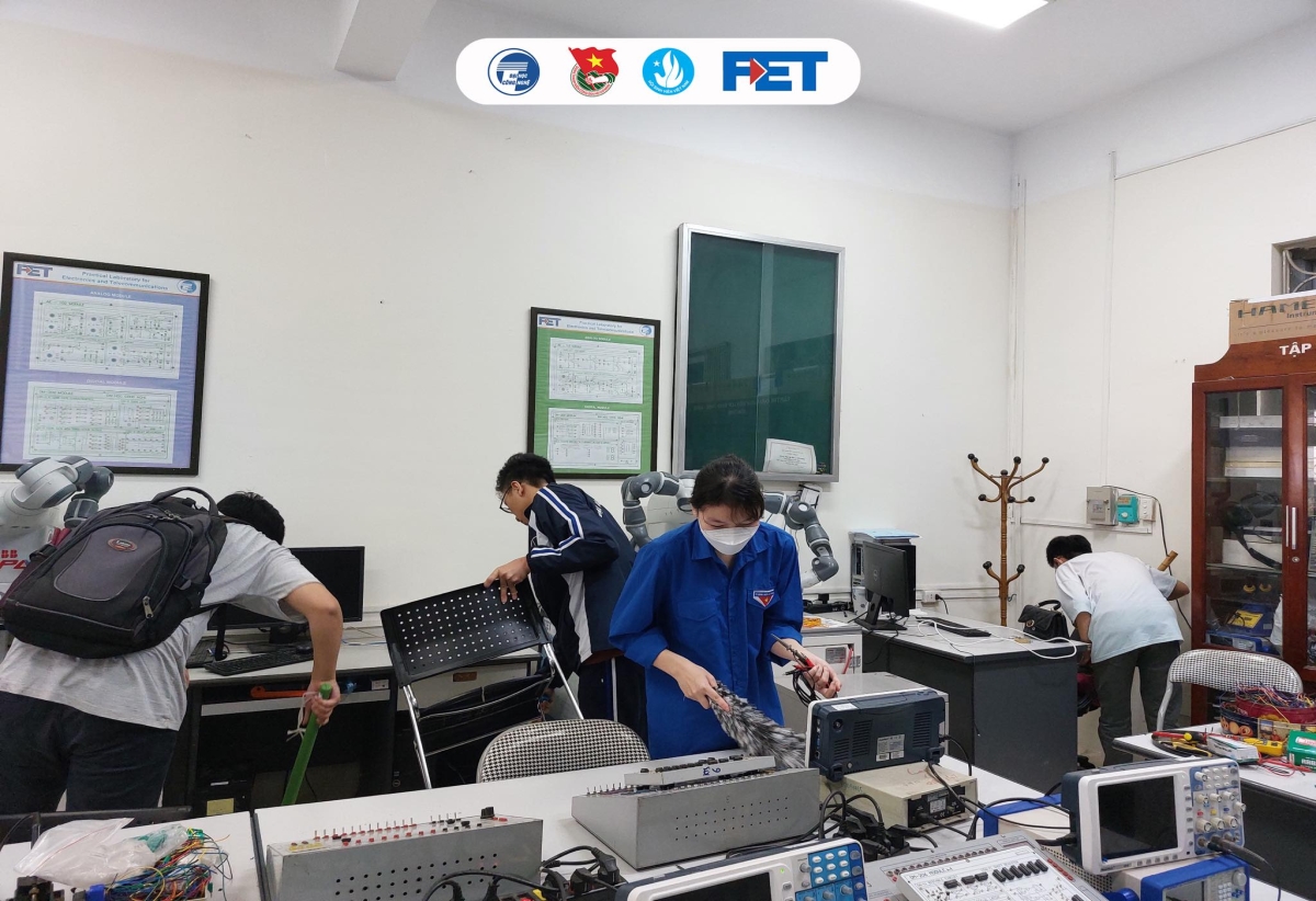 Liên chi Khoa Điện tử viễn thông tham gia vệ sinh các phòng học, phòng làm việc.