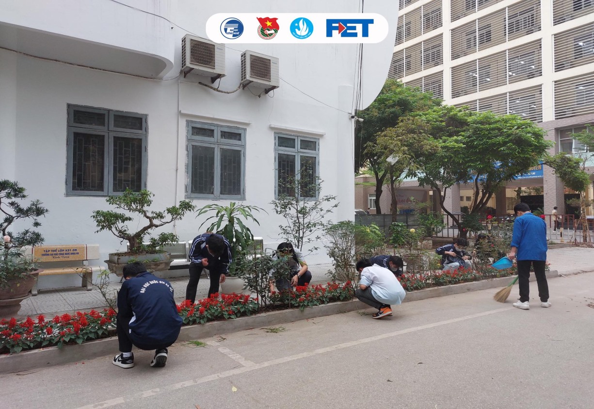 Qua đó, đoàn viên thanh niên Trường ĐH Công nghệ đã tham gia các hoạt động dọn dẹp vệ sinh, “Sống xanh, góp sạch”. Hoạt động có sự góp mặt của các tình nguyện viên trong Đoàn Thanh niên – Hội Sinh viên Trường cùng các đoàn viên của Liên chi Khoa Điện tử viễn thông, Viện Công nghệ Hàng không Vũ trụ tham gia vệ sinh các phòng học, phòng làm việc; chăm sóc cây và quét dọn các tuyến đường tại các khu giảng đường.