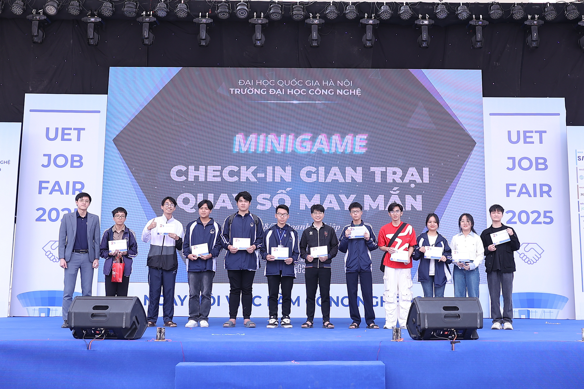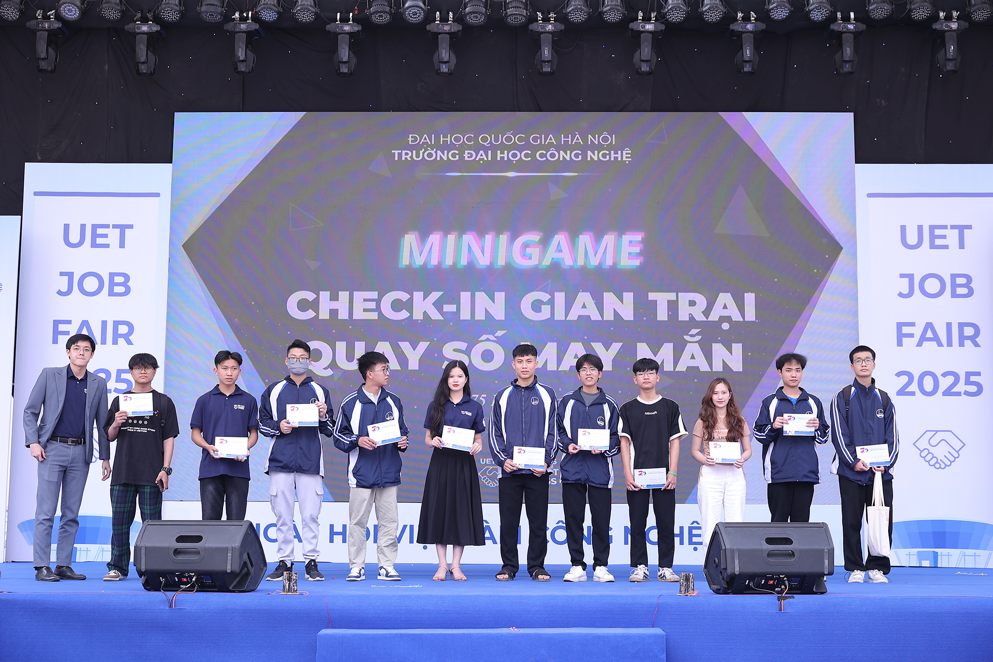 Hiệu trưởng cũng nhấn mạnh: “UET Jobfair 2025 là Ngày hội lớn của sinh viên toàn khối ngành công nghệ và kỹ thuật trên địa bàn thành phố Hà Nội. Ngày hội là dịp để các em tìm hiểu về thị trường lao động qua việc lắng nghe, tiếp xúc và tìm hiểu sâu hơn những nhu cầu của các nhà tuyển dụng, các em biết mình đã chuẩn bị được gì, còn thiếu những gì, từ đó trau dồi và định hướng cho mình con đường nghề nghiệp trong tương lai. Sớm hoàn thành chương trình đào tạo đúng thời hạn. Luôn có ý thức, trách nhiệm với bản thân, gia đình, và xã hội, lan toả giá trị cốt lõi, giá trị nhân văn của Trường ĐH Công nghệ đến với các thế hệ mai sau”.