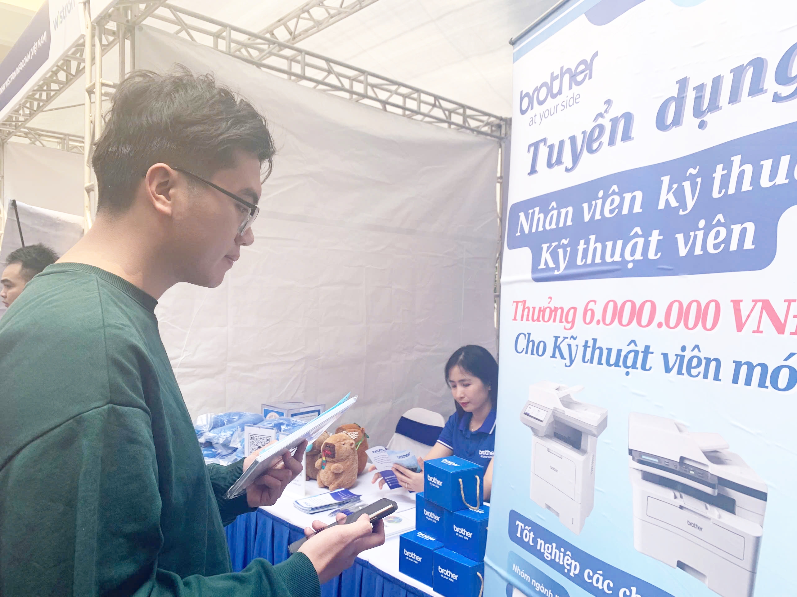 Sinh viên Phạm Công Nguyên (Khoa Điện tử viễn thông) tham gia Ngày hội việc làm
