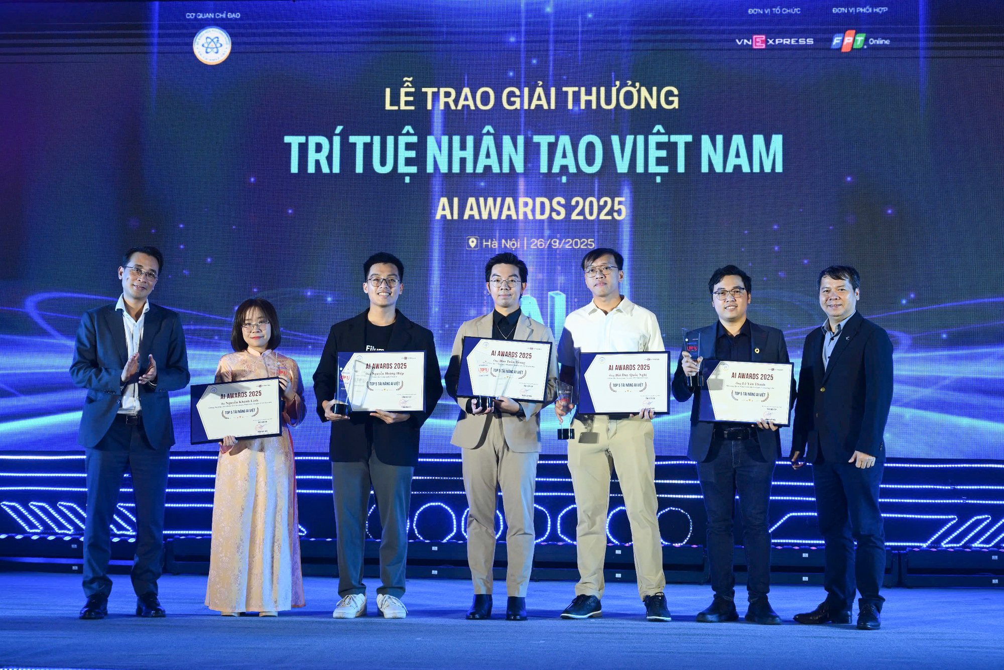 GS.TS Chử Đức Trình và TS. Nguyễn Tuấn Khang trao giải cho Top 5 Tài năng AI Việt của AI Awards 2025