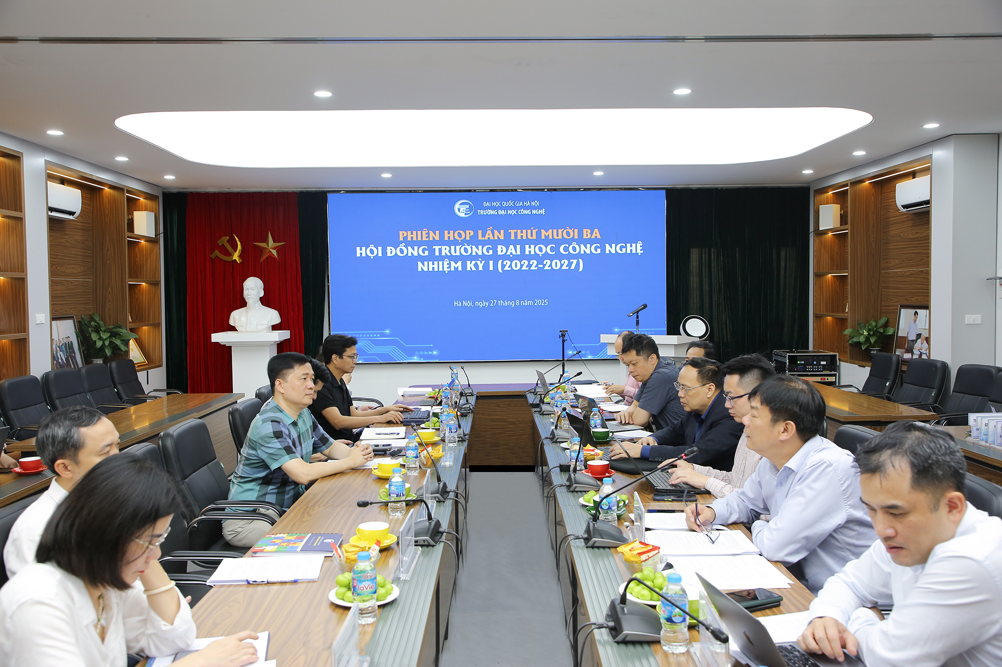 Chiều ngày 27/8/2025, Trường Đại học Công nghệ – Đại học Quốc gia Hà Nội (VNU-UET) đã tổ chức Phiên họp lần thứ mười ba Hội đồng Trường Đại học Công nghệ nhiệm kỳ 2022-2027 dưới sự chủ trì của GS.TS Chử Đức Trình – Phó Chủ tịch Hội đồng, Hiệu trưởng Trường ĐH Công nghệ.