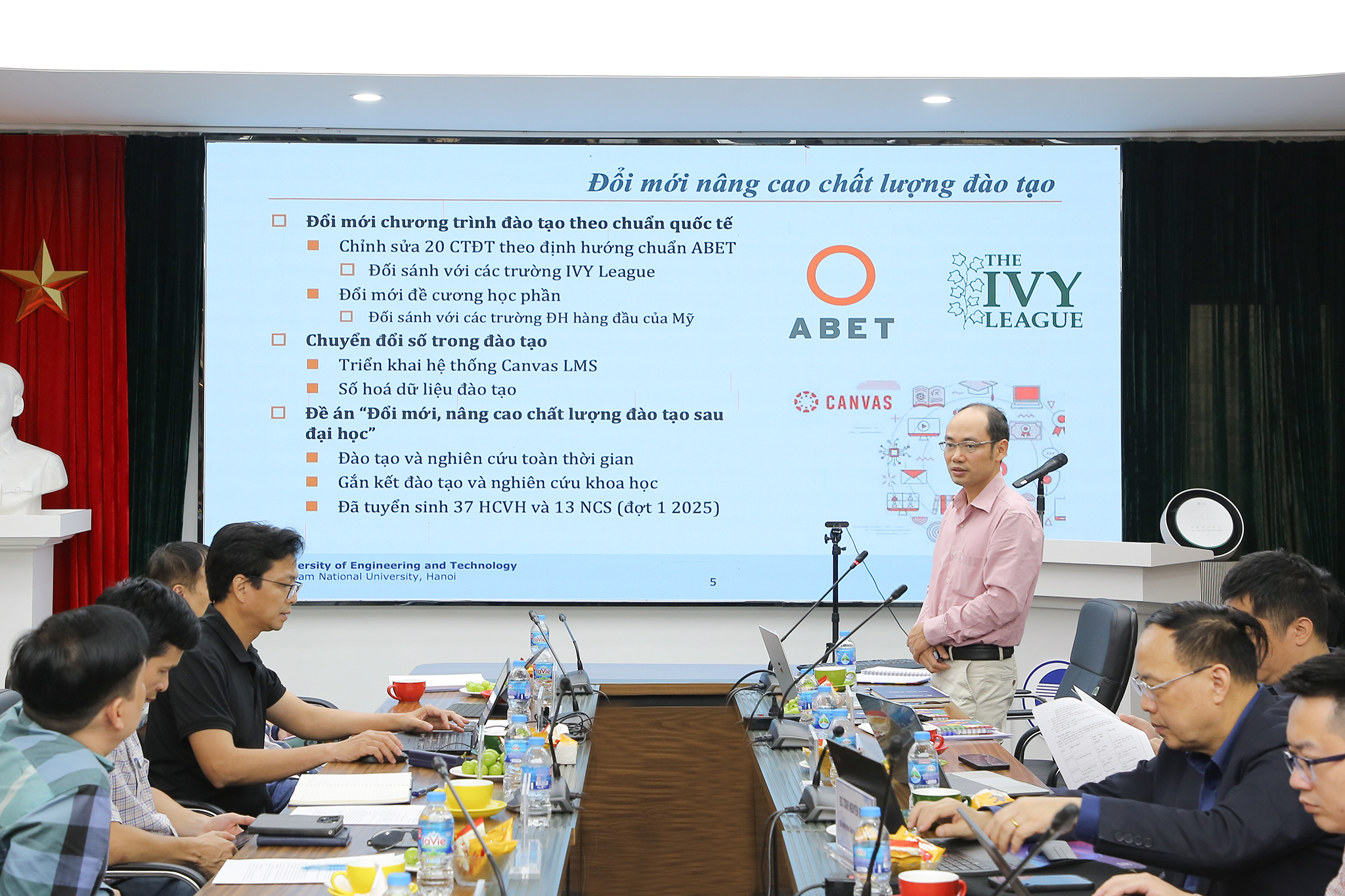 Các thành viên Hội đồng đánh giá cao kết quả hoạt động và thành tích của Nhà trường trong năm 2025, đặc biệt là thành công trong công tác tuyển sinh đại học với quy mô tăng 4.020 chỉ tiêu (năm 2024 là 2960 chỉ tiêu) nhưng điểm trúng tuyển cao hơn năm 2024 và thuộc top đầu khối các trường kỹ thuật công nghệ của cả nước. Các chương trình đào tạo đại học được cập nhật, điều chỉnh theo tiêu chuẩn kiểm định ABET, đối sánh với các chương trình đào tạo của các đại học hàng đầu thế giới, đặc biệt là nhóm Ivy League và các đại học nghiên cứu uy tín tại Hoa Kỳ, khẳng định cam kết của Nhà trường trong việc phát triển các chương trình đào tạo đạt chuẩn quốc tế, phục vụ hiệu quả chiến lược phát triển bền vững nguồn nhân lực chất lượng cao trong các lĩnh vực công nghệ liên quan, nâng tầm vị thế của Nhà trường.