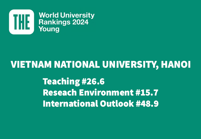 Trước đó, vào tháng 5/2024, ĐHQGHN gia tăng chỉ số tiêu chí quốc tế hóa và môi trường nghiên cứu trong Bảng xếp hạng đại học trẻ thế giới 2024 (Times Higher Education Young University Rankings 2024 – THE YUR 2024). ĐHQGHN với tiêu chí Giảng dạy (26,6 điểm – tăng 2,9 điểm so với kỳ xếp hạng THE YUR 2023 – xếp top 1 Việt Nam) – qua đó, duy trì vị thế hàng đầu trong hoạt động đào tạo Việt Nam. Ngoài ra, ĐHQGHN còn có sự gia tăng ở 2 nhóm tiêu chí khác là Môi trường nghiên cứu (15,7 điểm – tăng 2,2 điểm so với kỳ xếp hạng trước) và Quốc tế hóa (48,9 điểm – tăng 3,4 điểm so với kỳ xếp hạng trước – đây cũng là nhóm tiêu chí có điểm cao nhất của ĐHQGHN).