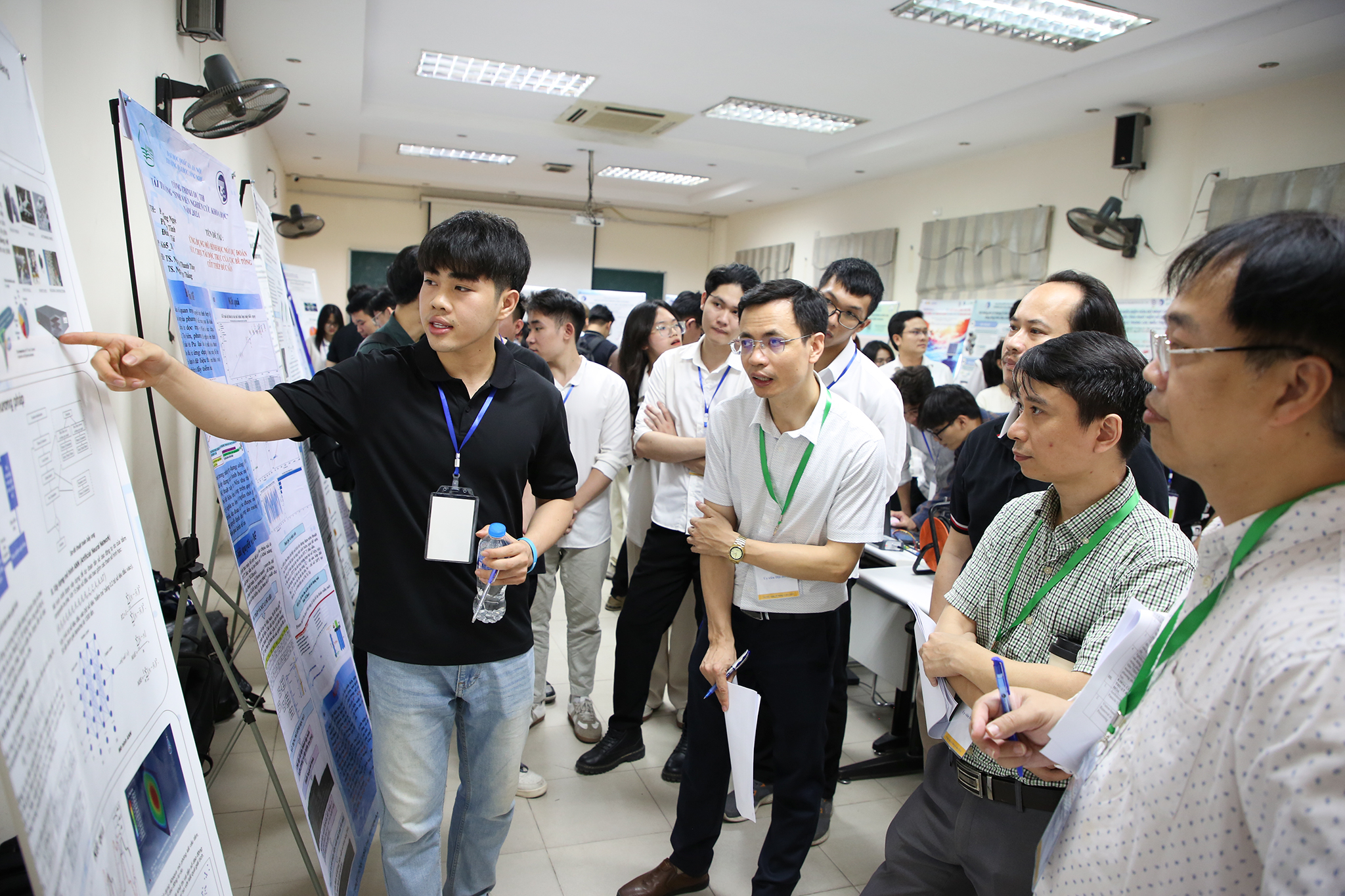 Đề tài “Nghiên cứu dao động phi tuyến và tối ưu hóa tấm làm bằng vật liệu composite ba pha” do sinh viên Nguyễn Văn Duy (thứ hai, bên phải ảnh) nghiên cứu đạt giải nhất hội nghị sinh viên nghiên cứu khoa học cấp trường