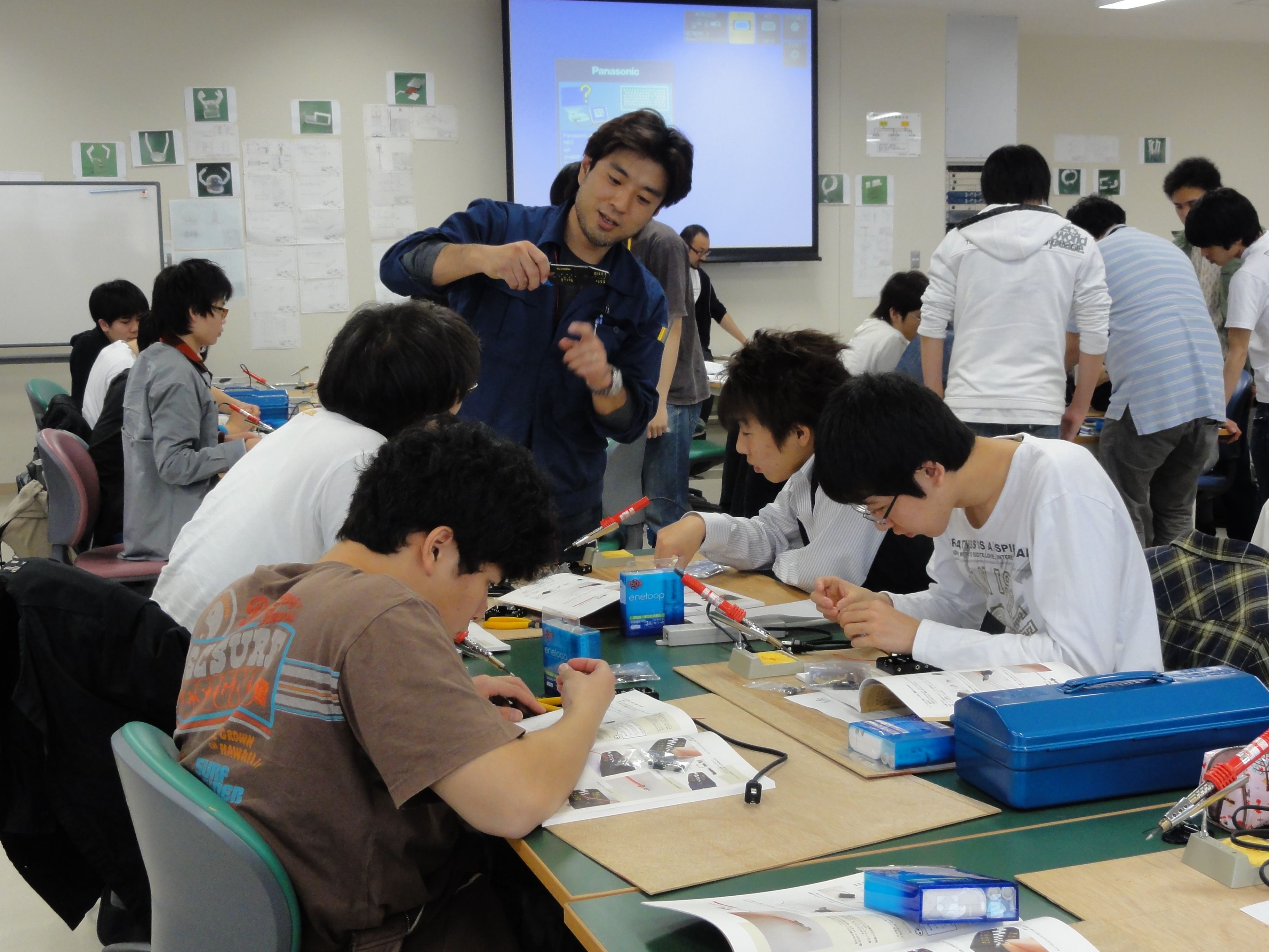 Sinh viên nghe hướng dẫn sử dụng bo mạch xử lý tín hiệu số chuyên dụng cho robot, có thể điều khiển đồng thời nhiều sensor và mô tơ. Ảnh: Fuminari YOSHITSUGU. Ảnh: Fuminari YOSHITSUGU
