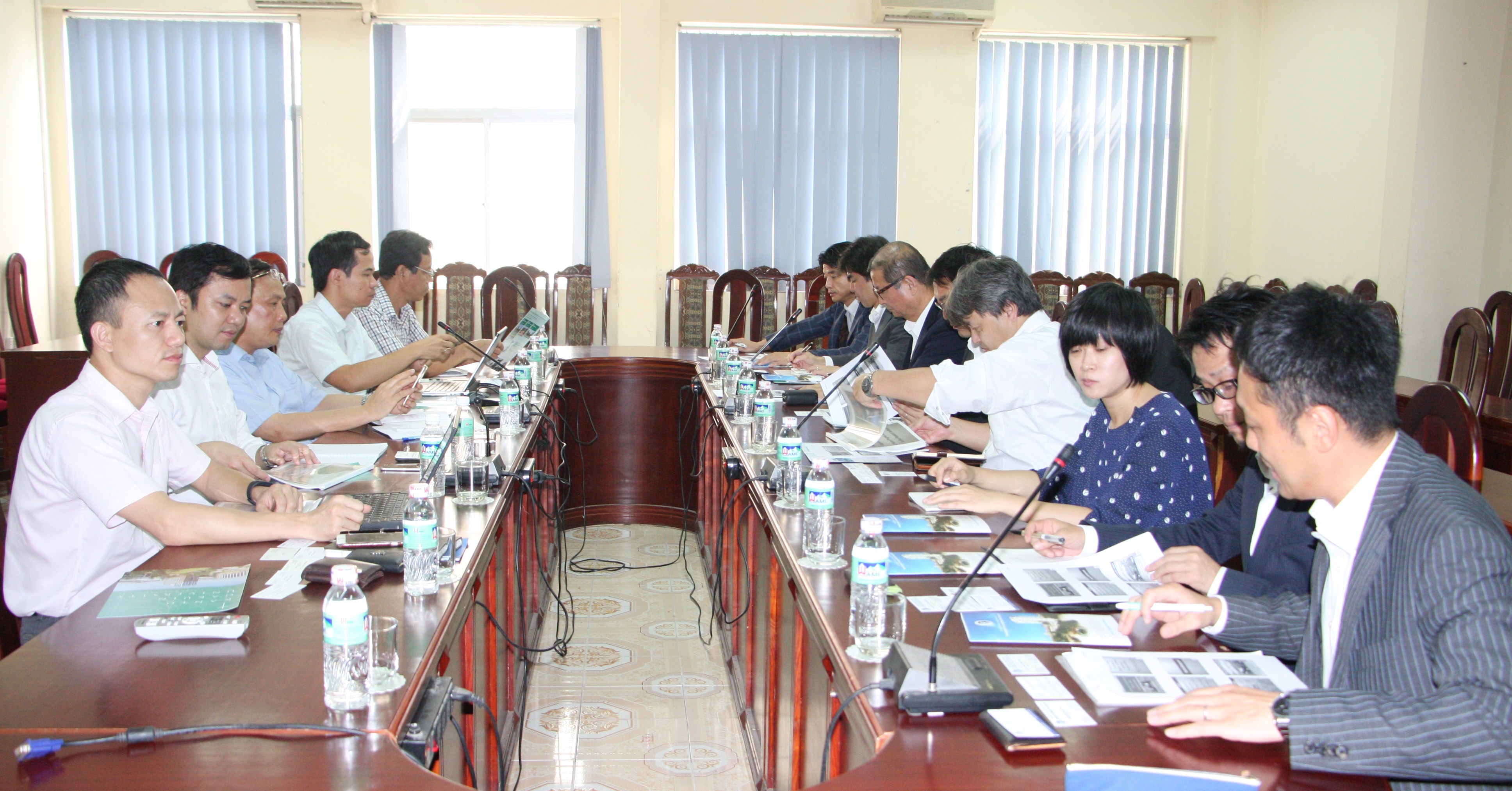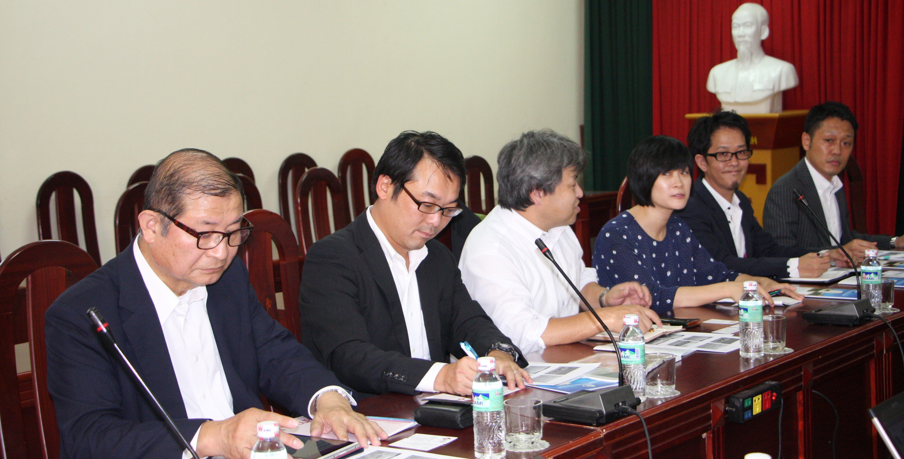 Trường ĐHCN (ngồi bên trái ảnh) tiếp đoàn Trường ĐH Kanto Gakuin (ngồi bên phải ảnh)