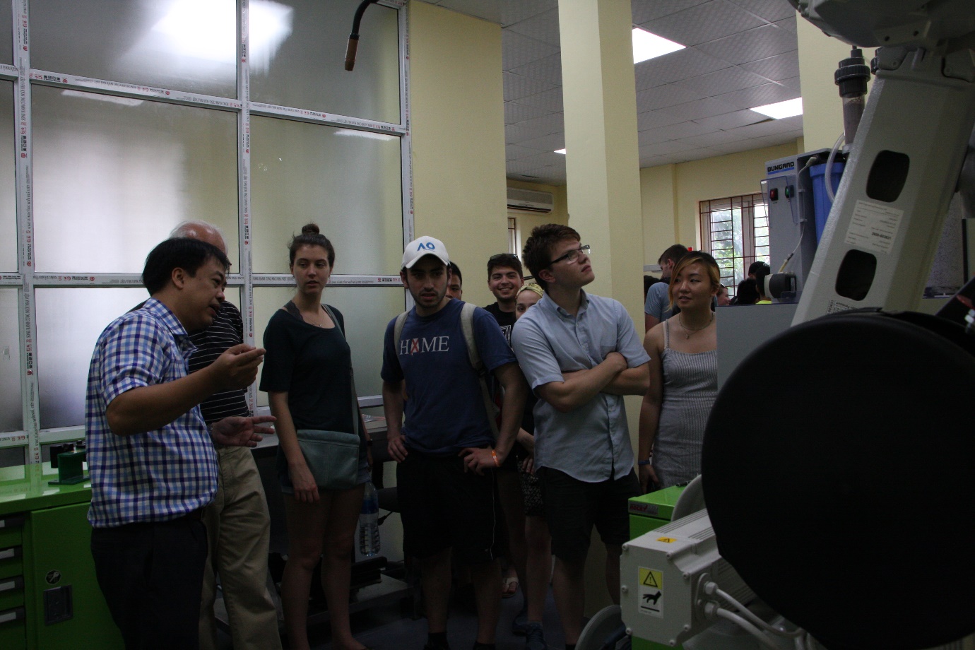 Sau khi trao đổi về các hướng nghiên cứu và các nội dung học tập chuyên ngành Cơ điện tử năm cuối, GS. Taslim cùng đoàn sinh viên đã đi tham quan phòng thí nghiệm, xưởng Cơ khí – Tự động hóa và giao lưu cùng các thầy/ cô giáo, sinh viên của khoa.