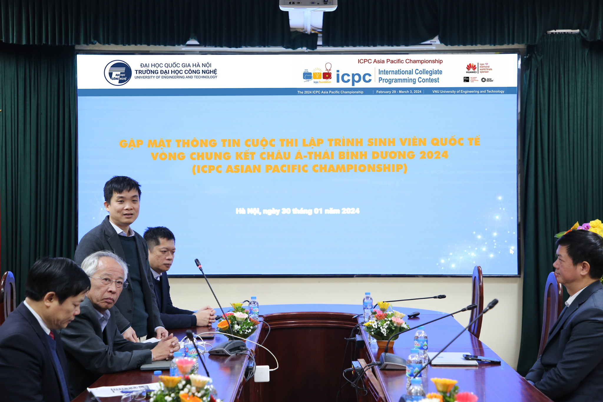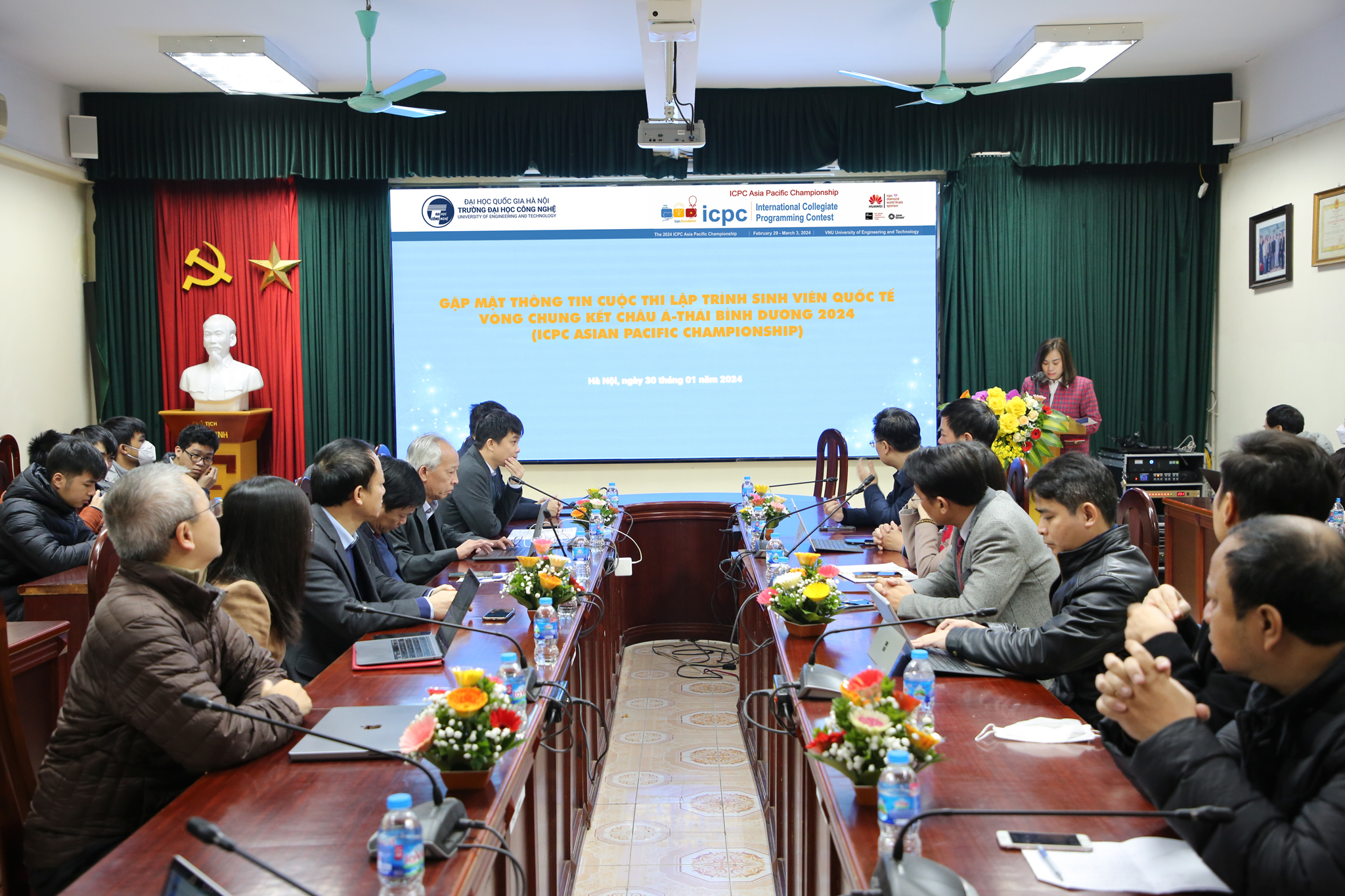 Năm 2024, Trường Đại học Công nghệ – ĐHQGHN (VNU-UET) đăng cai Tổ chức Kỳ thi Lập trình sinh viên quốc tế – Vòng chung kết Châu Á – Thái Bình Dương (The 2024 ICPC Asian Pacific Championship) phối hợp với ICPC Việt Nam và ICPC Asia Pacific, diễn ra từ ngày 29/02/2024 – 03/3/2024. Đây là thông tin được công bố trong sự kiện gặp mặt thông tin về kỳ thi Lập trình sinh viên quốc tế – Vòng chung kết khu vực châu Á-Thái Bình Dương (ICPC Asian Pacific Championship) 2024 được tổ chức tại Trường Đại học Công nghệ ngày 30/1/2024