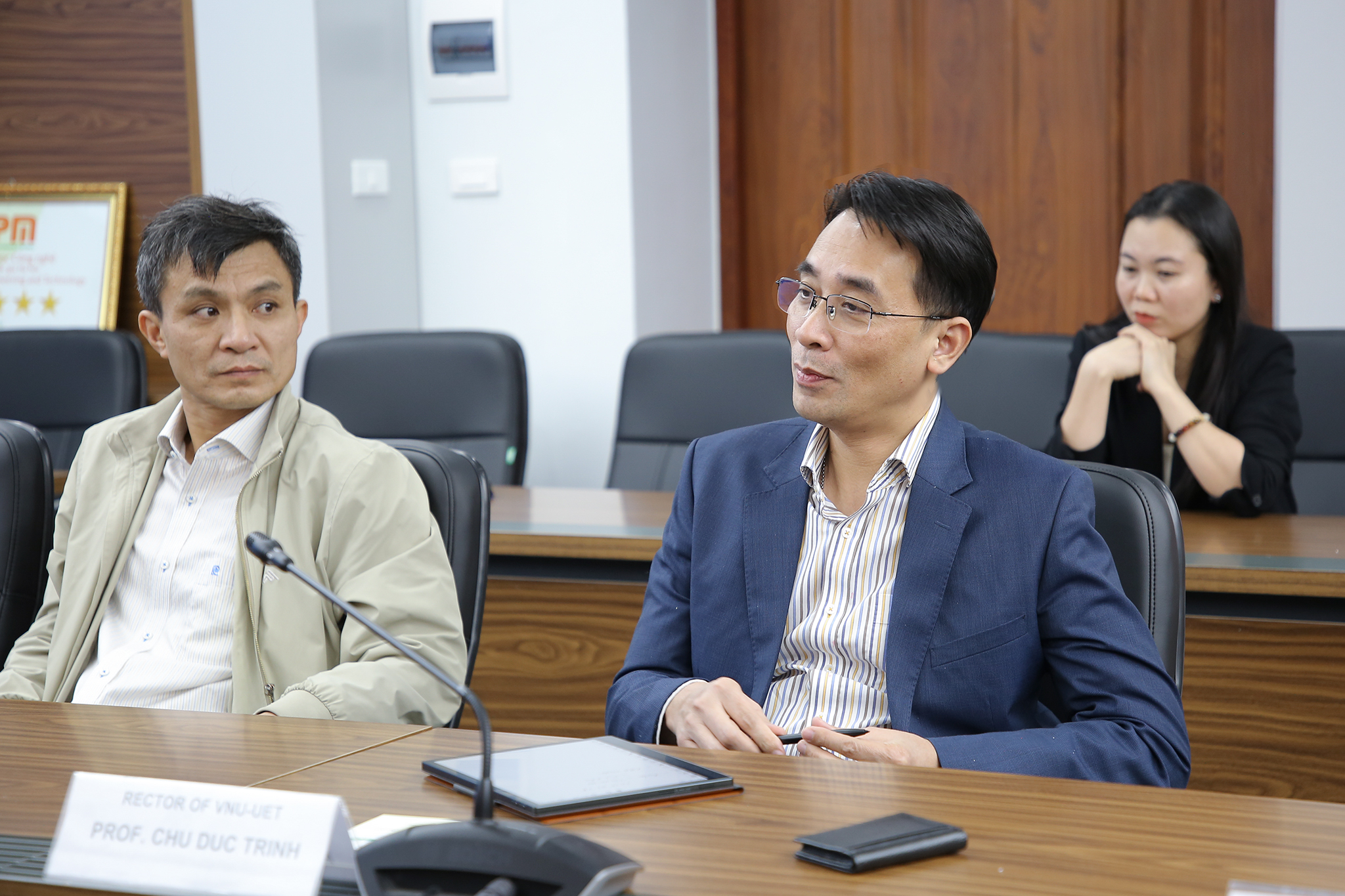 Tham dự tiếp đoàn, về phía Trường ĐH Công nghệ có GS.TS Chử Đức Trình – Hiệu trưởng cùng lãnh đạo Khoa Công nghệ Thông tin và Khoa Điện tử Viễn thông.