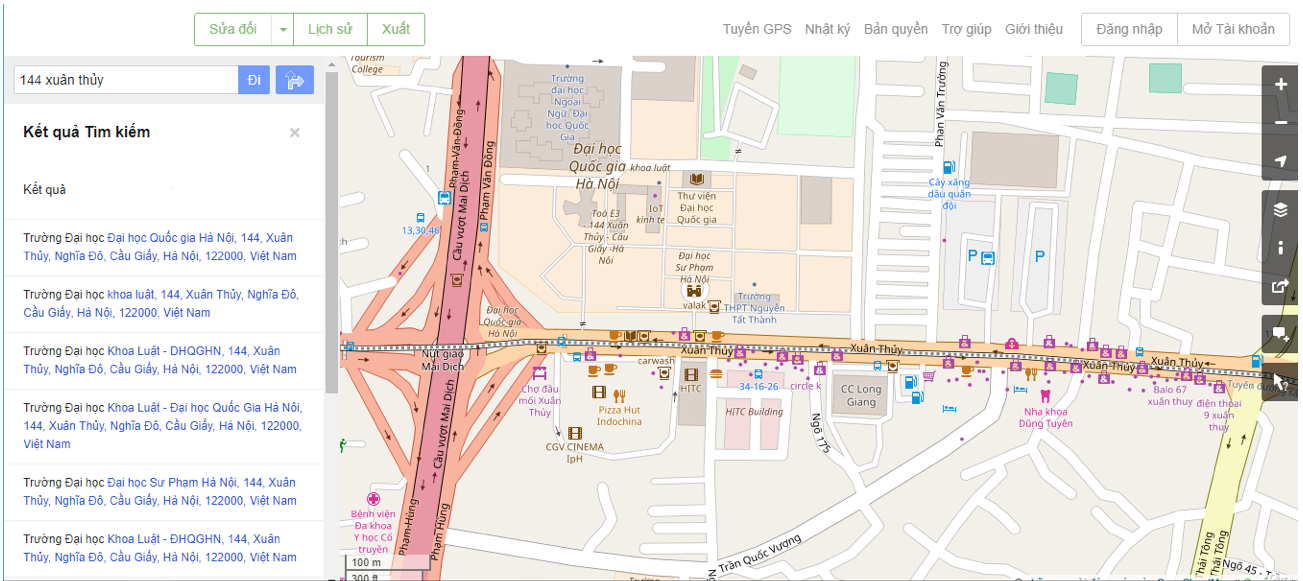 Giao diện của hệ thống Bản đồ số Việt Nam VNMap
