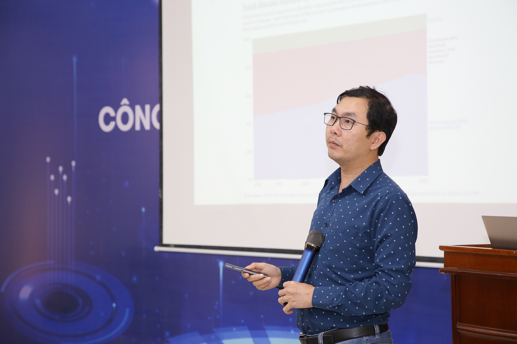 ThS.BS Nguyễn Văn Phi – Trưởng khoa Sức khỏe tâm thần, Bệnh viện Lão khoa Trung ương, giảng viên Trường Đại học Y Hà Nội trình bày báo cáo “Tư duy mới về sức khỏe trong kỷ nguyên hoang mang và hỗn loạn”