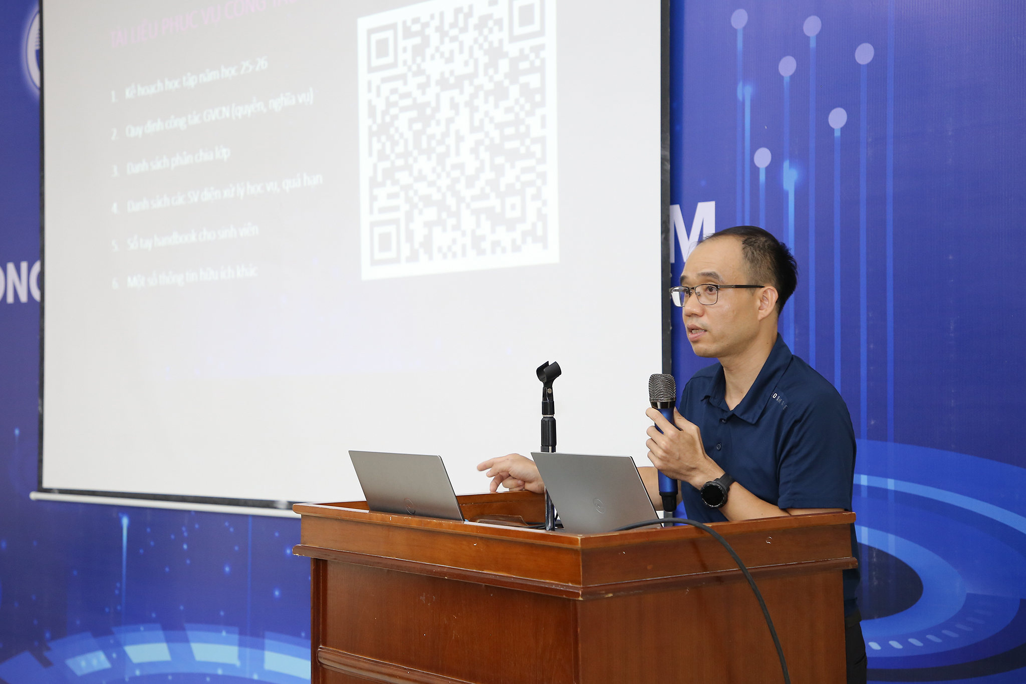 Tại hội nghị, các báo cáo chuyên môn do TS. Bùi Trung Ninh – Trưởng phòng Công tác sinh viên và ThS. Vũ Thị Bích Hà – chuyên viên Phòng Đào tạo trình bày đã cung cấp nhiều thông tin quan trọng về kế hoạch đào tạo và quản lý sinh viên. Đặc biệt, phần chia sẻ của ThS.BS Nguyễn Văn Phi – Trưởng khoa Sức khỏe tâm thần, Bệnh viện Lão khoa Trung ương, giảng viên Trường Đại học Y Hà Nội đã mang lại những kiến thức thiết thực giúp giáo viên chủ nhiệm nhận diện dấu hiệu khó khăn tâm lý của sinh viên, đưa ra định hướng hỗ trợ ban đầu và giới thiệu tới các kênh chuyên nghiệp khi cần thiết.